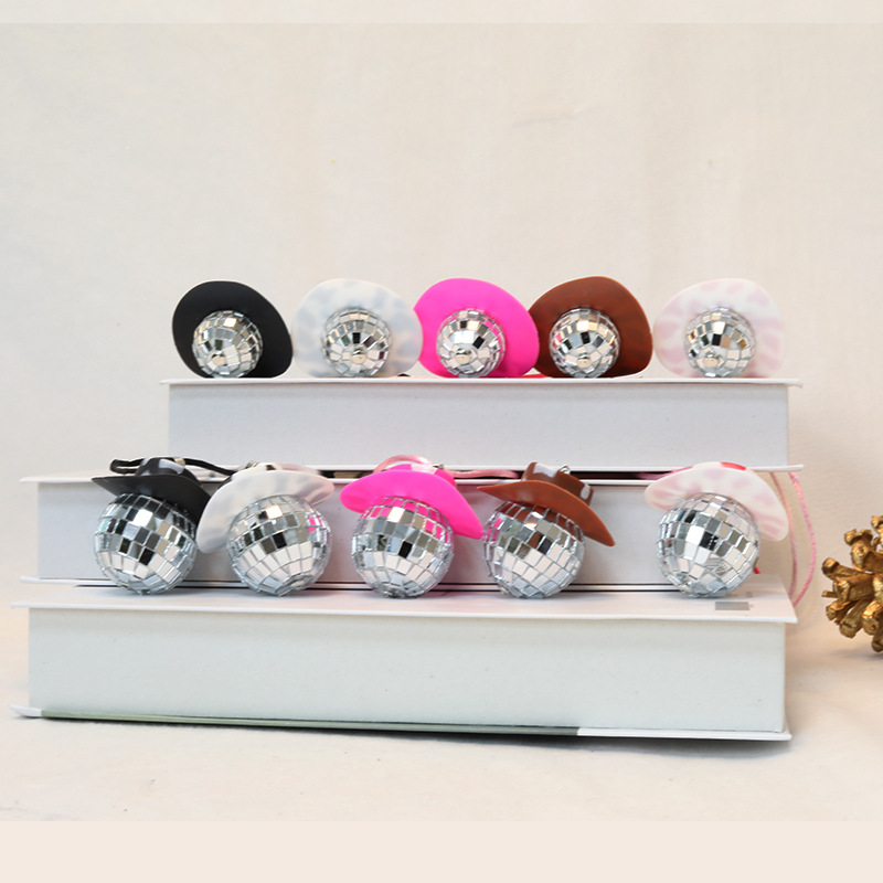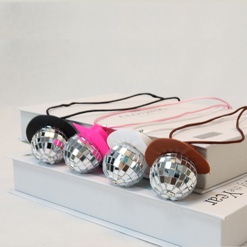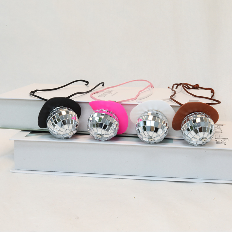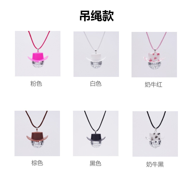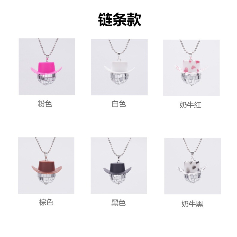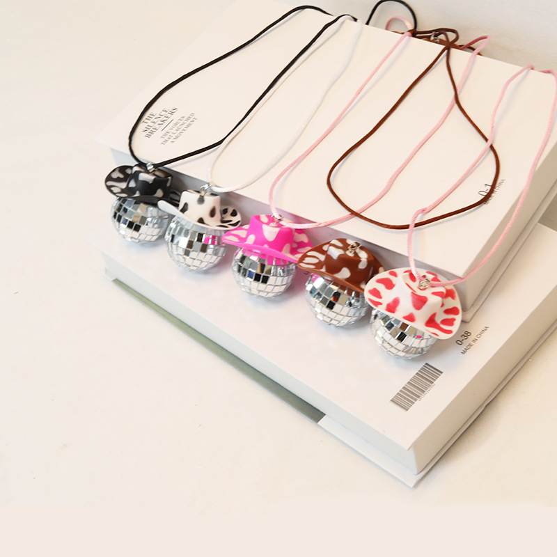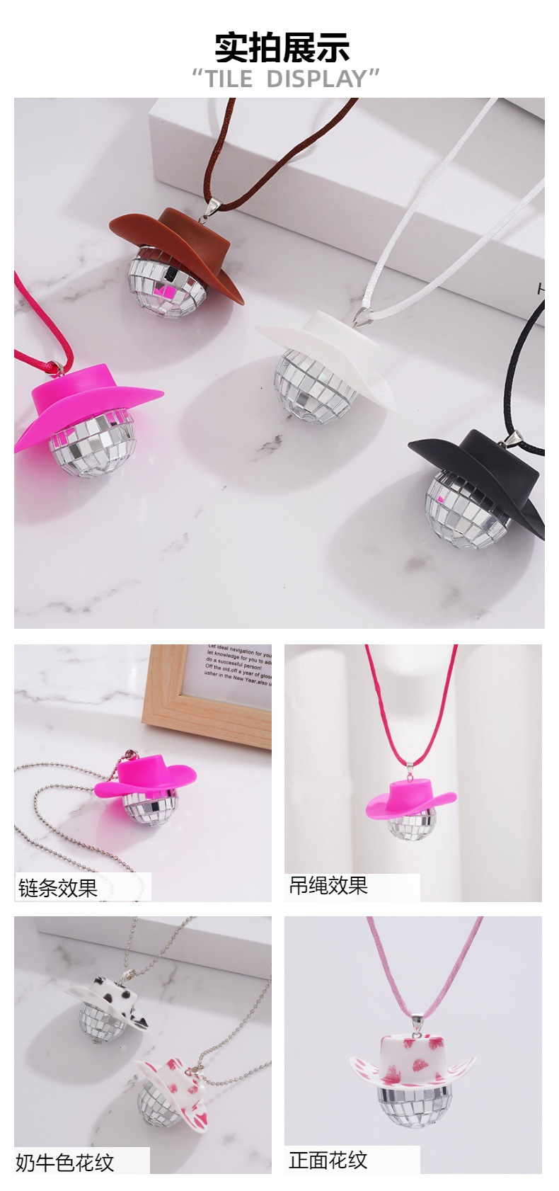 2023 Comercio exterior transfronterizo nueva bola de cristal colgante sombrero de vaquero discoteca espejo bola collar europeo y americano accesorios creativos