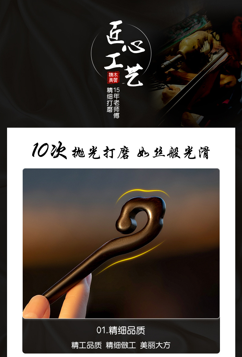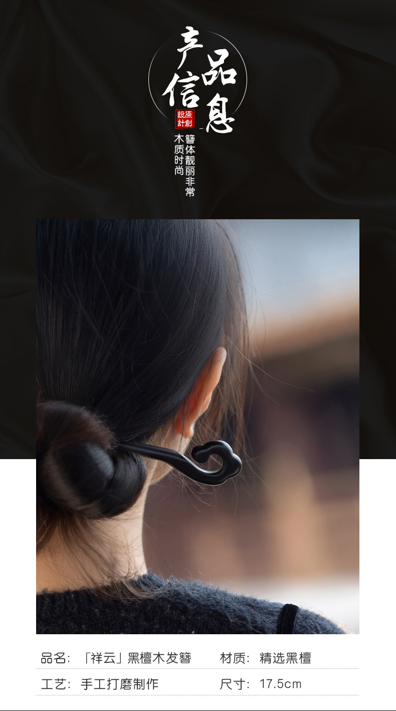 Xiangyun horquilla estilo antiguo simple diario de alto grado updo horquilla de madera nuevo estilo chino accesorios para el cabello palillos de ébano al por mayor