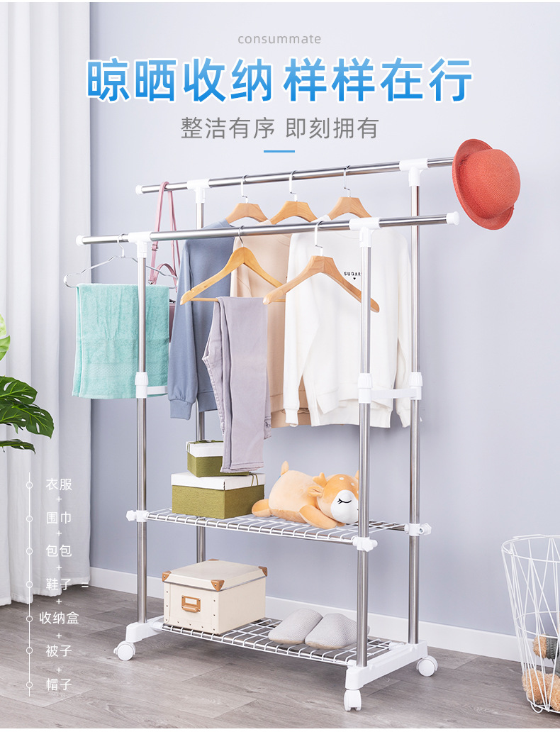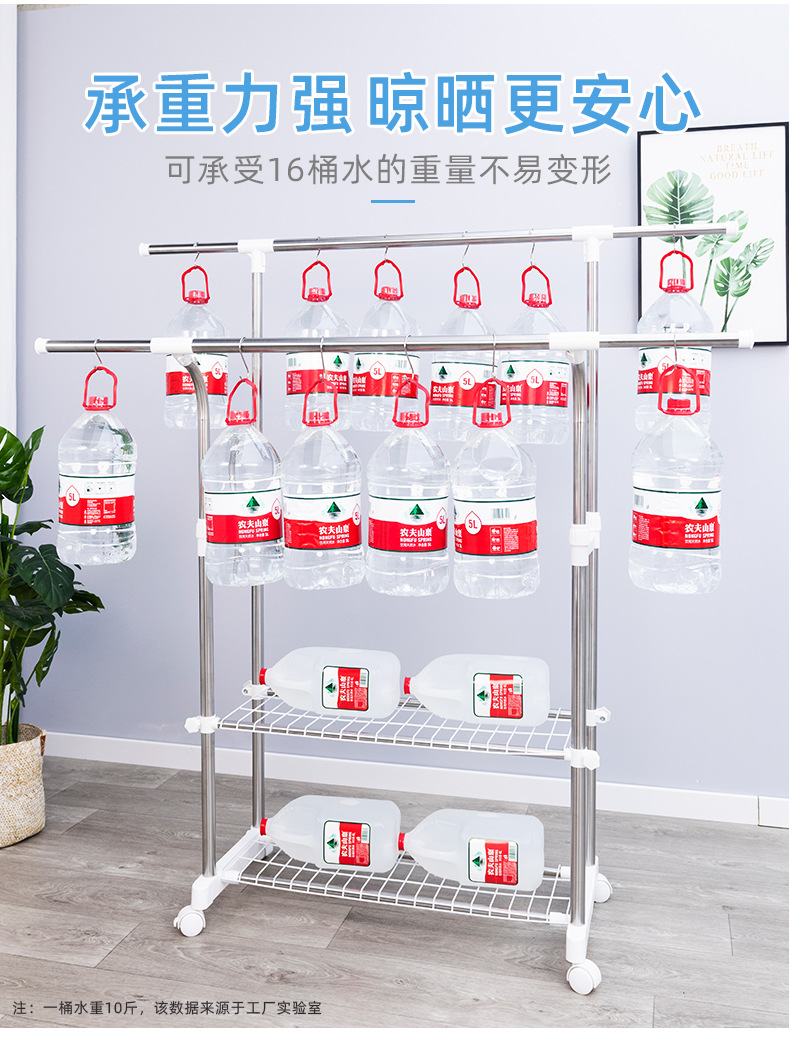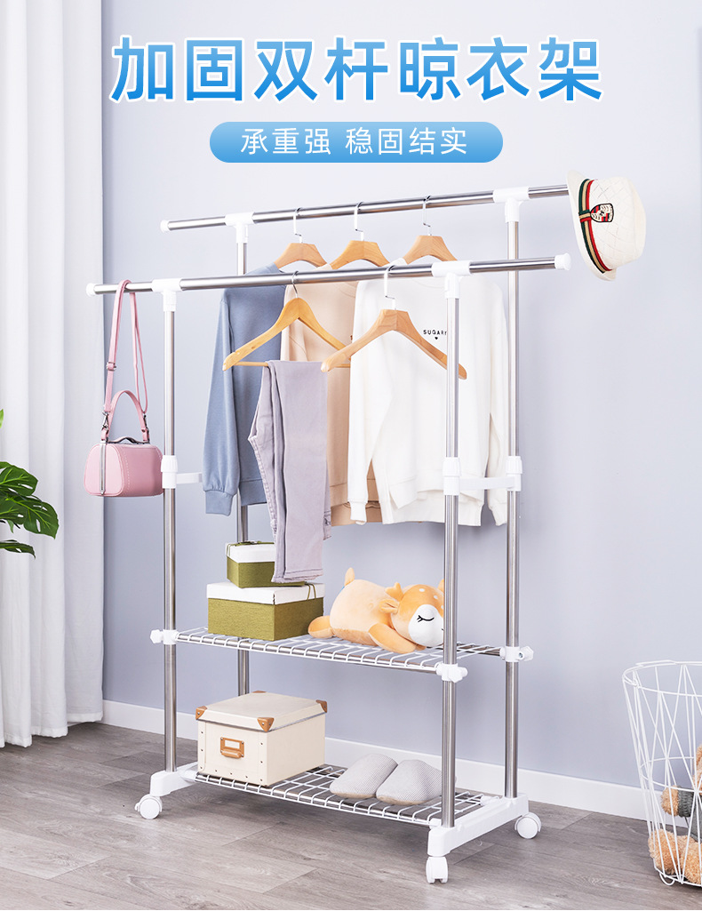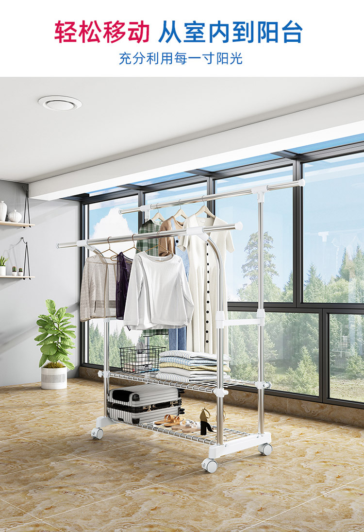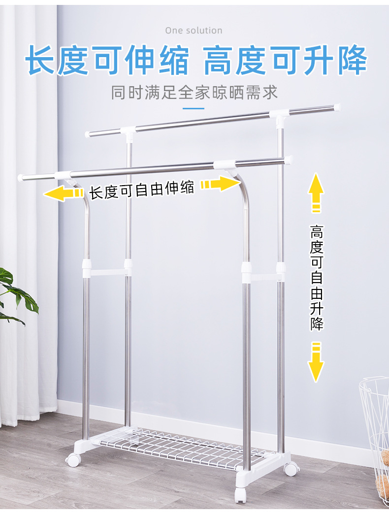Tendedero, piso, estante de secado para el hogar, estante de secado móvil de doble poste, balcón, barra de secado telescópica de acero inoxidable, transfronterizo