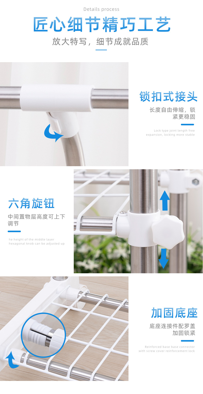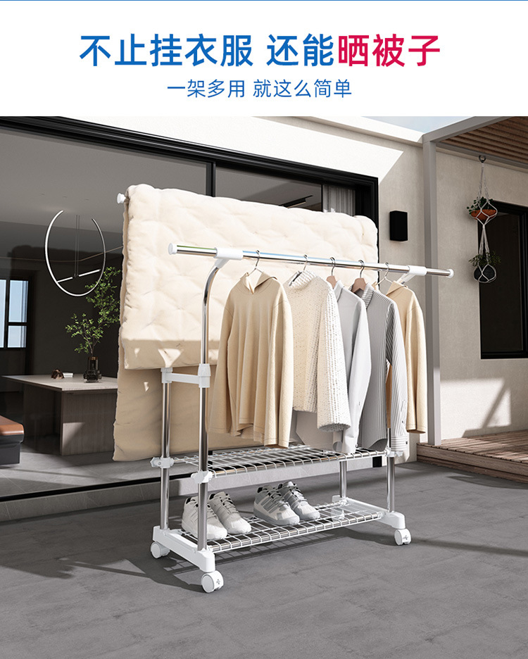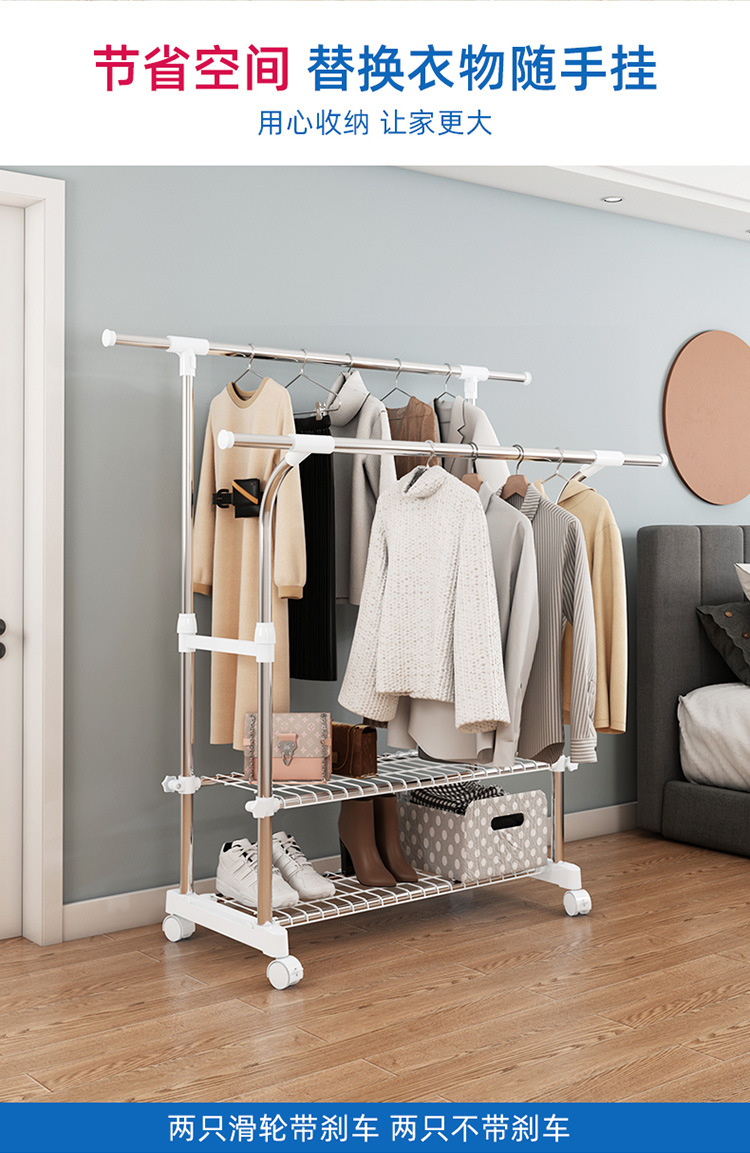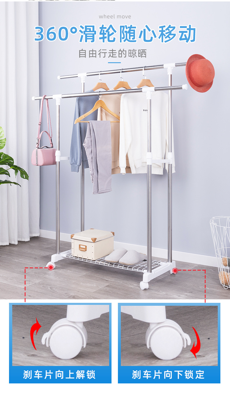 Tendedero, piso, estante de secado para el hogar, estante de secado móvil de doble poste, balcón, barra de secado telescópica de acero inoxidable, transfronterizo