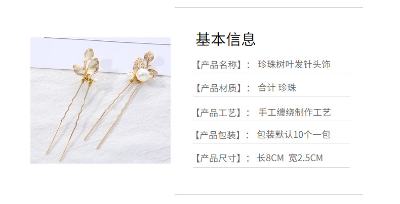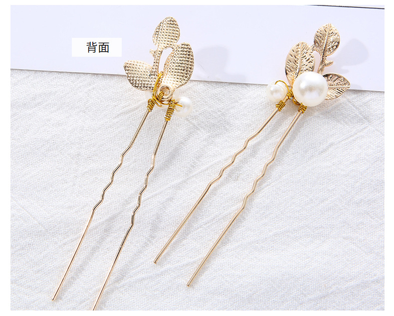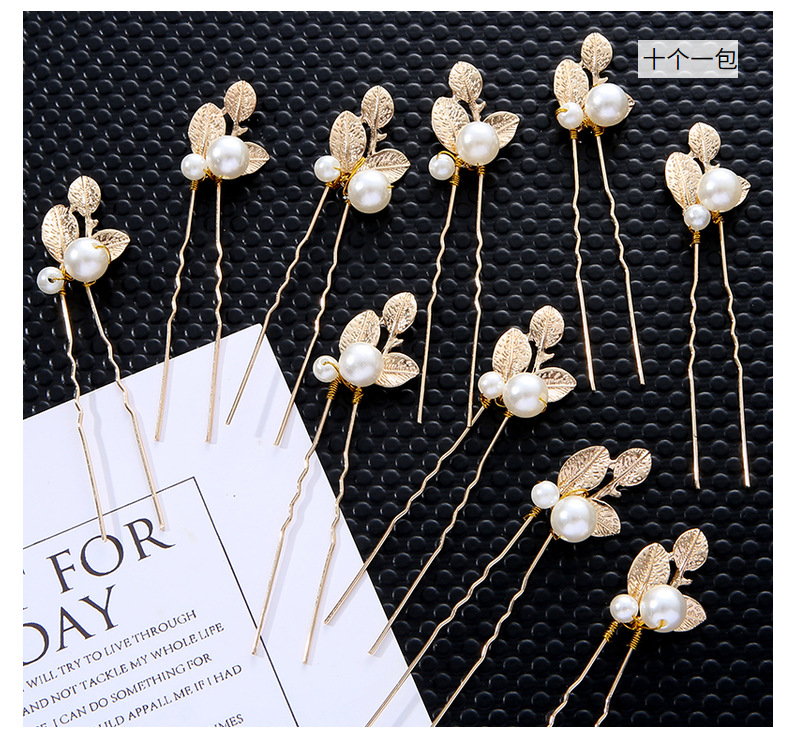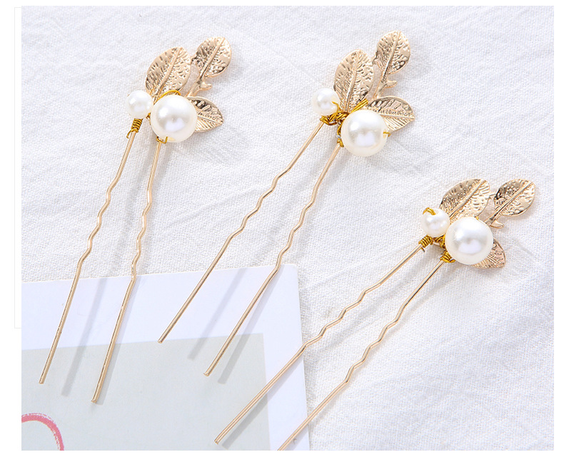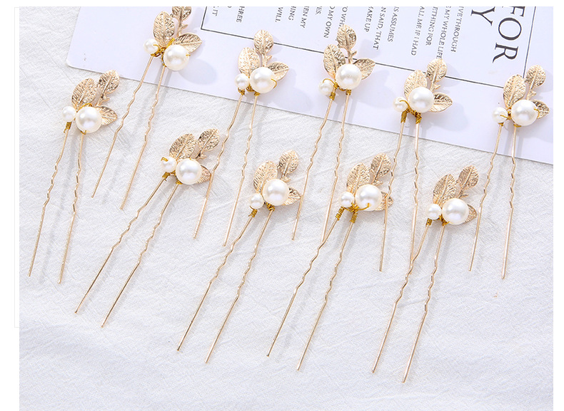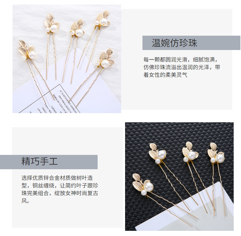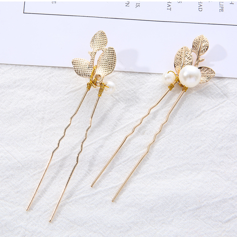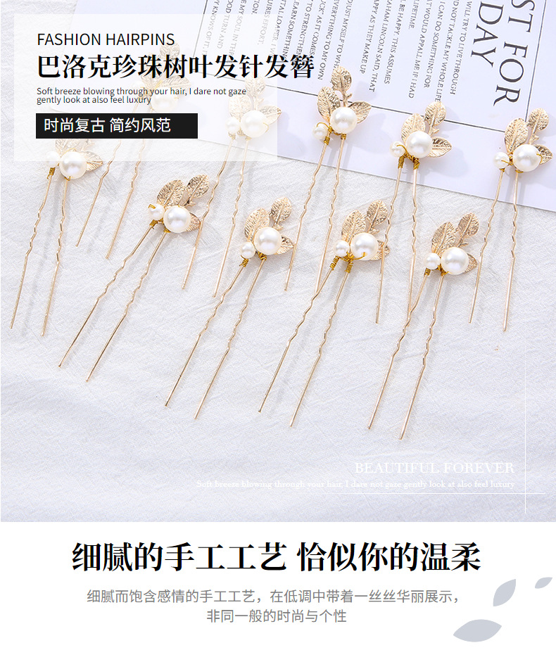Europa y América Nueva Perla hoja horquilla accesorios para el cabello barroco tocado nupcial horquilla de oro al por mayor