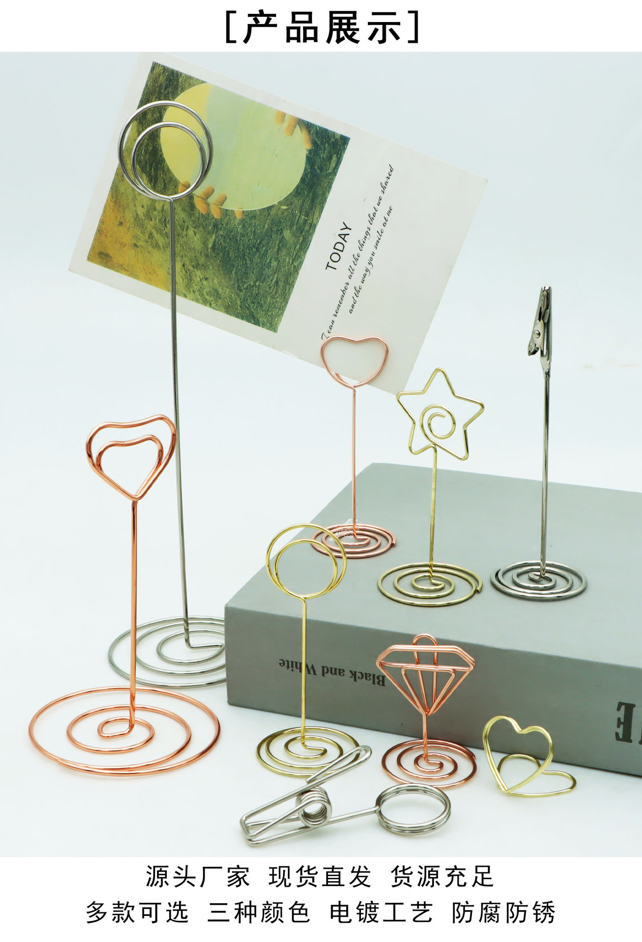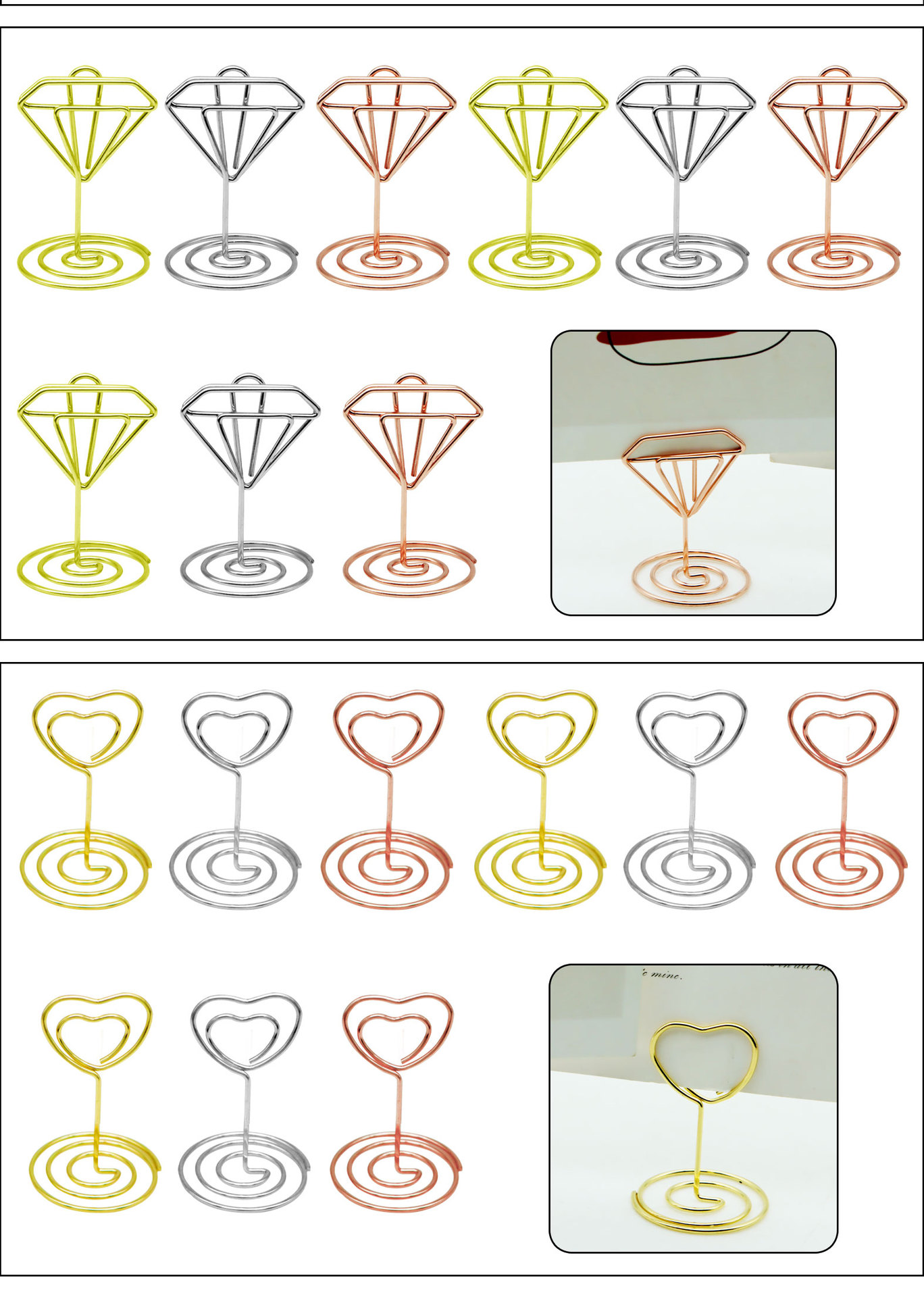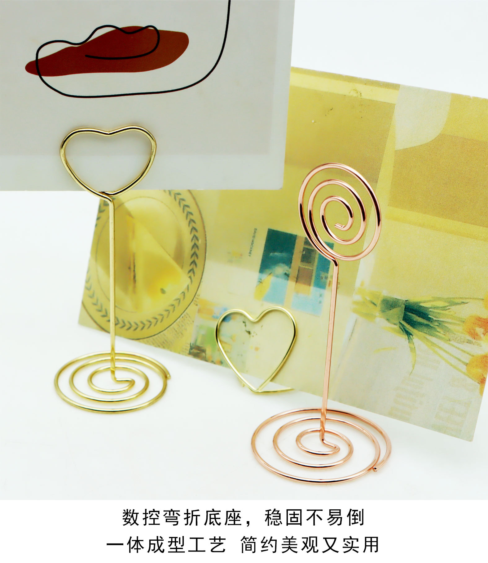Titular de nota redonda tridimensional titular de la tarjeta de visita creativa titular de la tarjeta de mensaje titular de la tarjeta de metal en forma de corazón titular de asiento decoración al por mayor
