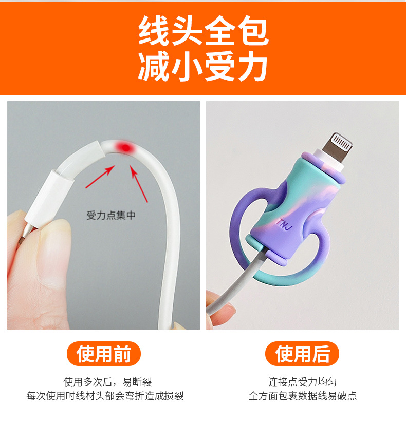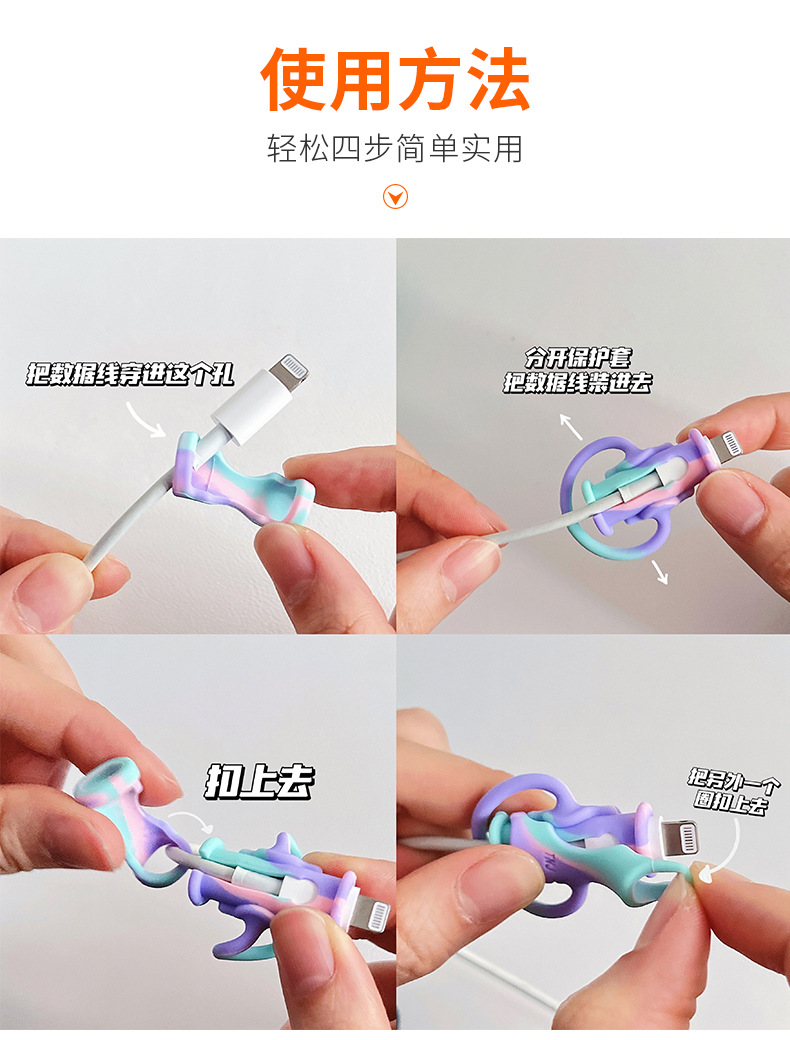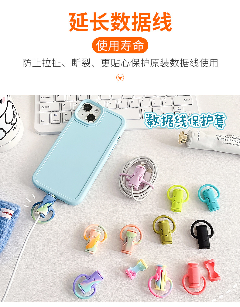 Cable de datos del teléfono móvil cubierta protectora silicona de dibujos animados dos en uno Cable de protección anti-fractura cubierta protectora de la cabeza del hilo de carga