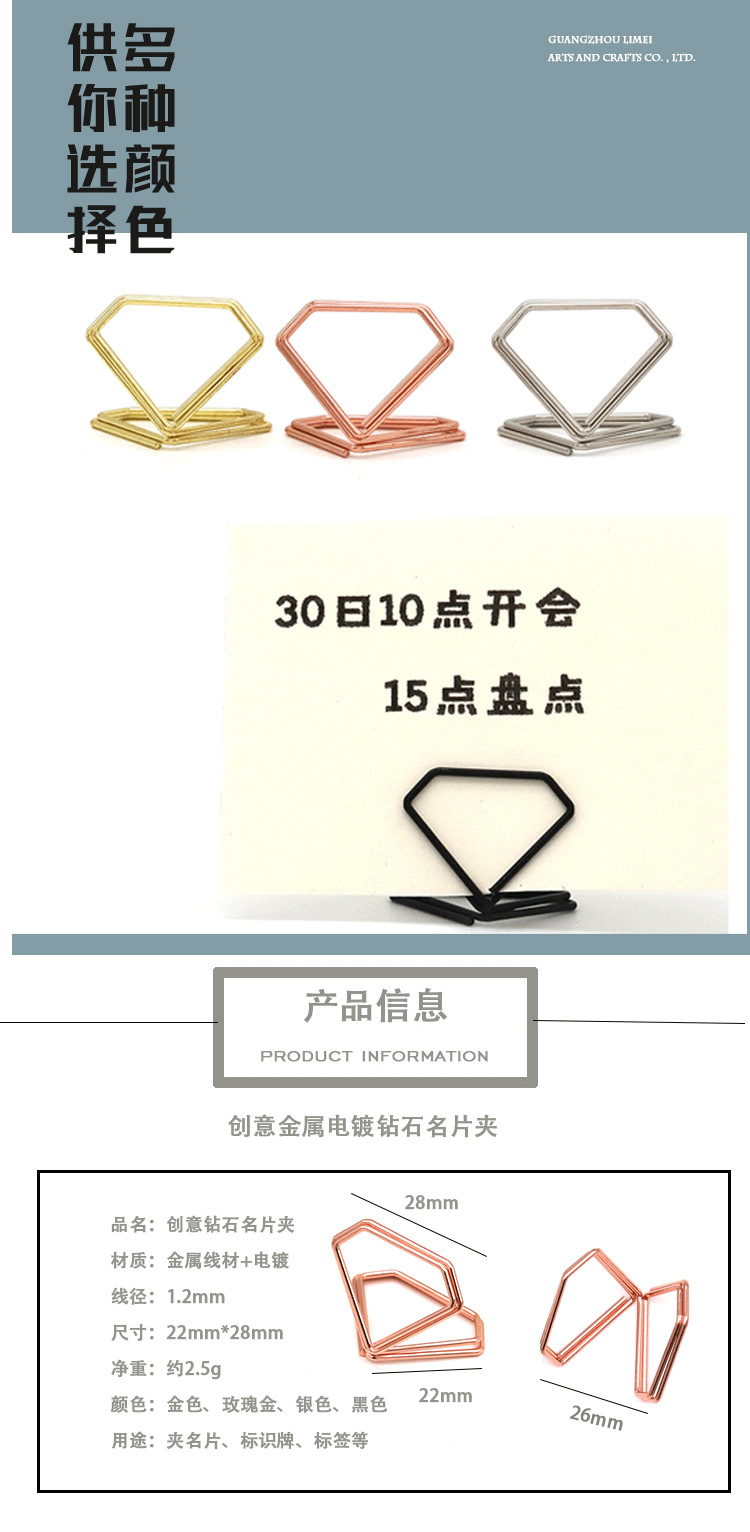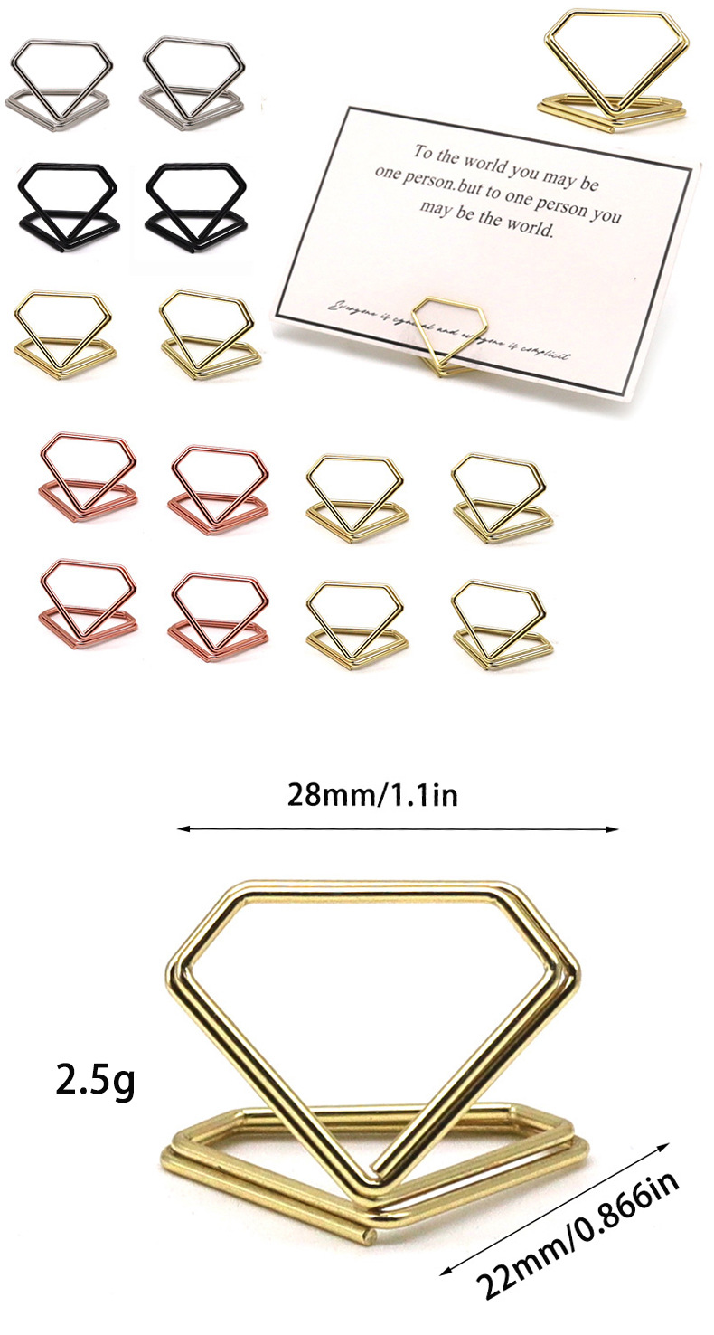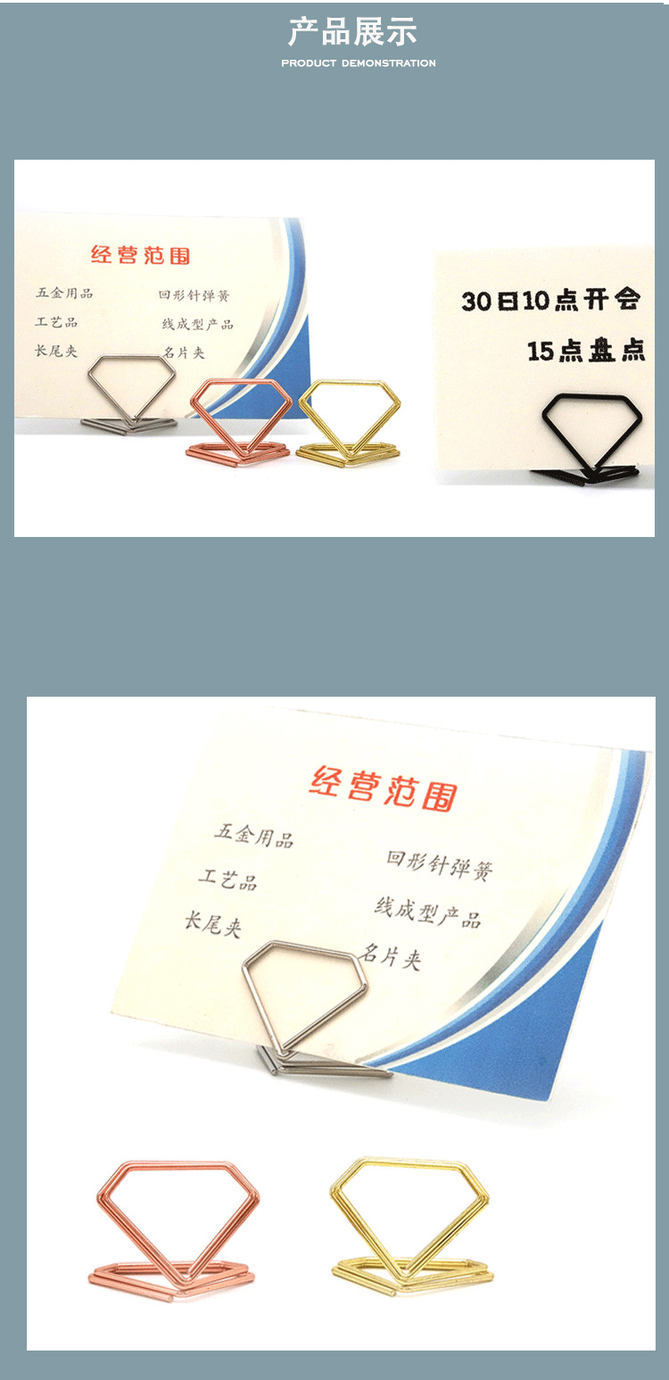 Fábrica al por mayor diamante titular de la tarjeta de visita titular de la tarjeta de mesa de escritorio titular de la nota vertical de metal elevar mano pequeños adornos clip de fotos