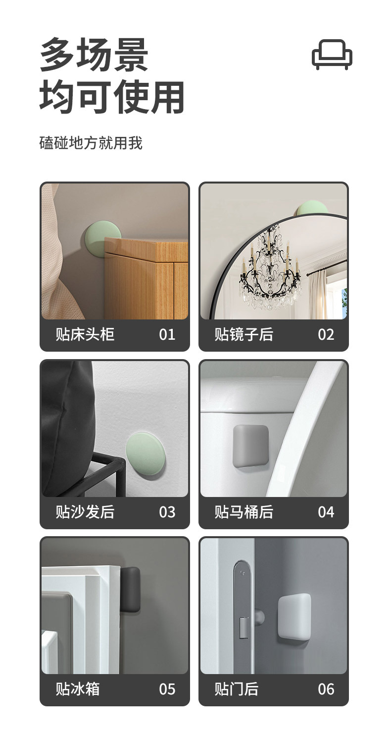 Almohadillas Anticolisión para Manijas de Puerta al por Mayor, Almohadillas de Silicona Anticolisión y Antigolpes para la Parte Trasera de la Puerta, Amortiguador Simple, Pegatinas Anticolisión Silenciosas