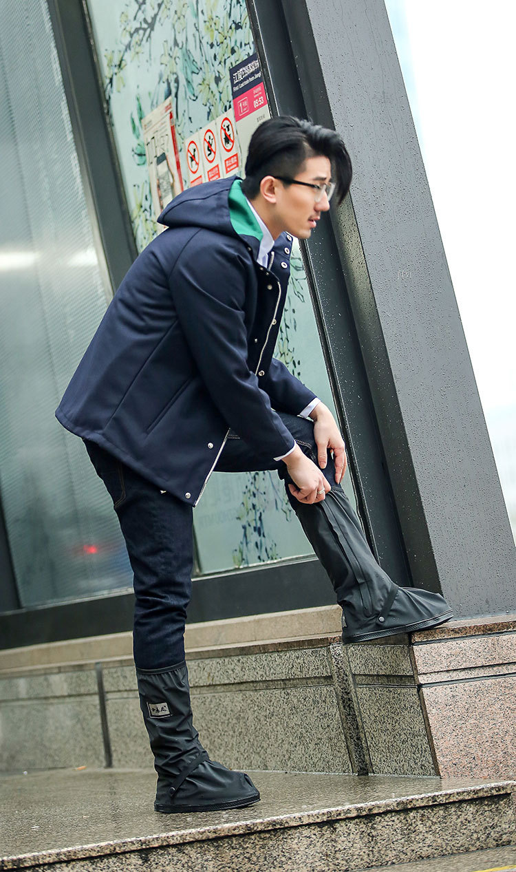 Cubierta de zapato a prueba de lluvia al aire libre Yuyisi para ciclismo y caminar mejorada parte superior alta engrosada 212 cubierta de zapato a prueba de lluvia impermeable en blanco y negro