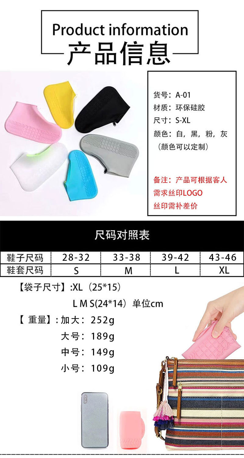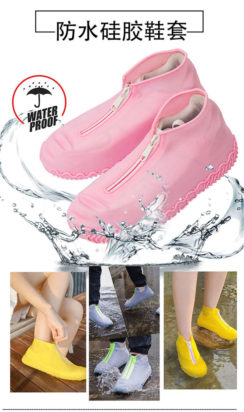 En stock suministro directo conveniente cremallera impermeable engrosada resistente al desgaste adulto cubierta del zapato a prueba de lluvia al aire libre nieve antideslizante cubierta del zapato de silicona