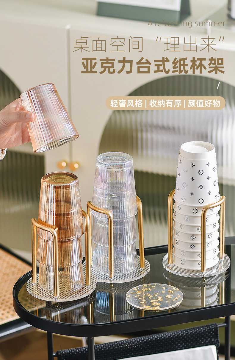 Portavasos de papel de acrílico portavasos desechables taza de agua de escritorio rack de almacenamiento Barra de agua taza de té rack de almacenamiento
