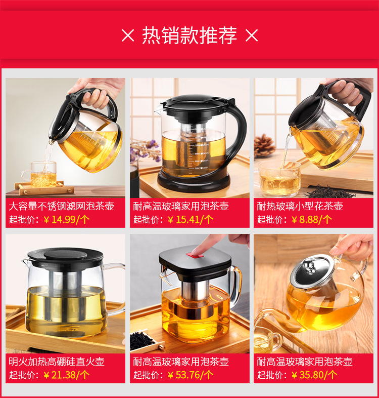 Jiameihua tetera de vidrio de borosilicato resistente al calor té negro Kung Fu Filtro de calefacción resistente a altas temperaturas juego de té fabricante de té simple
