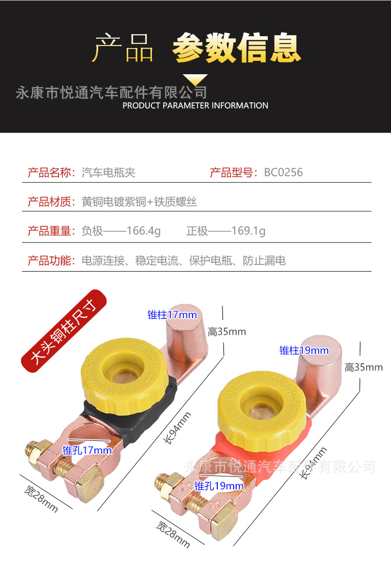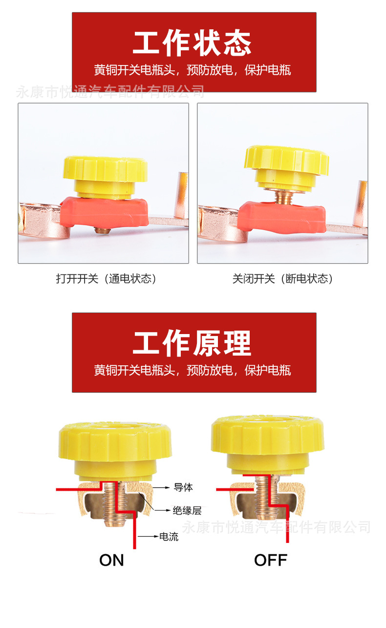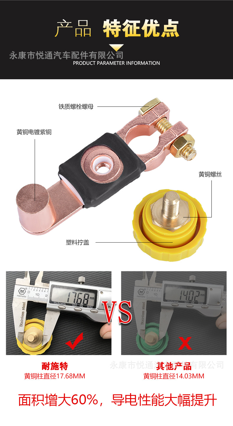 Fábrica directa de cobre puro universal coche batería interruptor anti-fuga batería pila cabeza Chuck