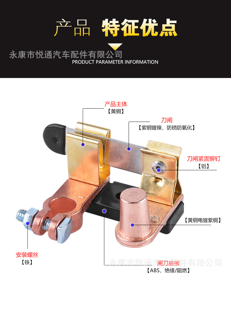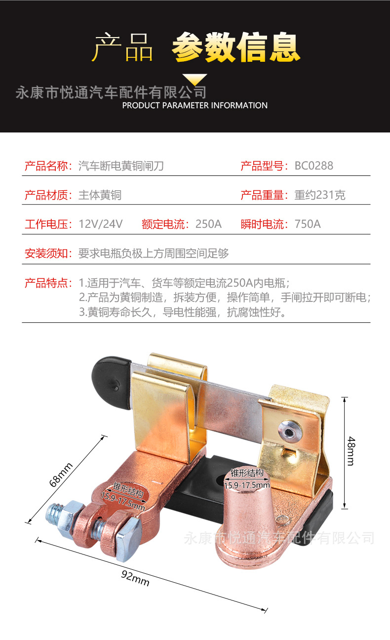 Coche de latón de la batería de apagado interruptor de cuchillo interruptor de alimentación del coche grande interruptor de modificación del coche
