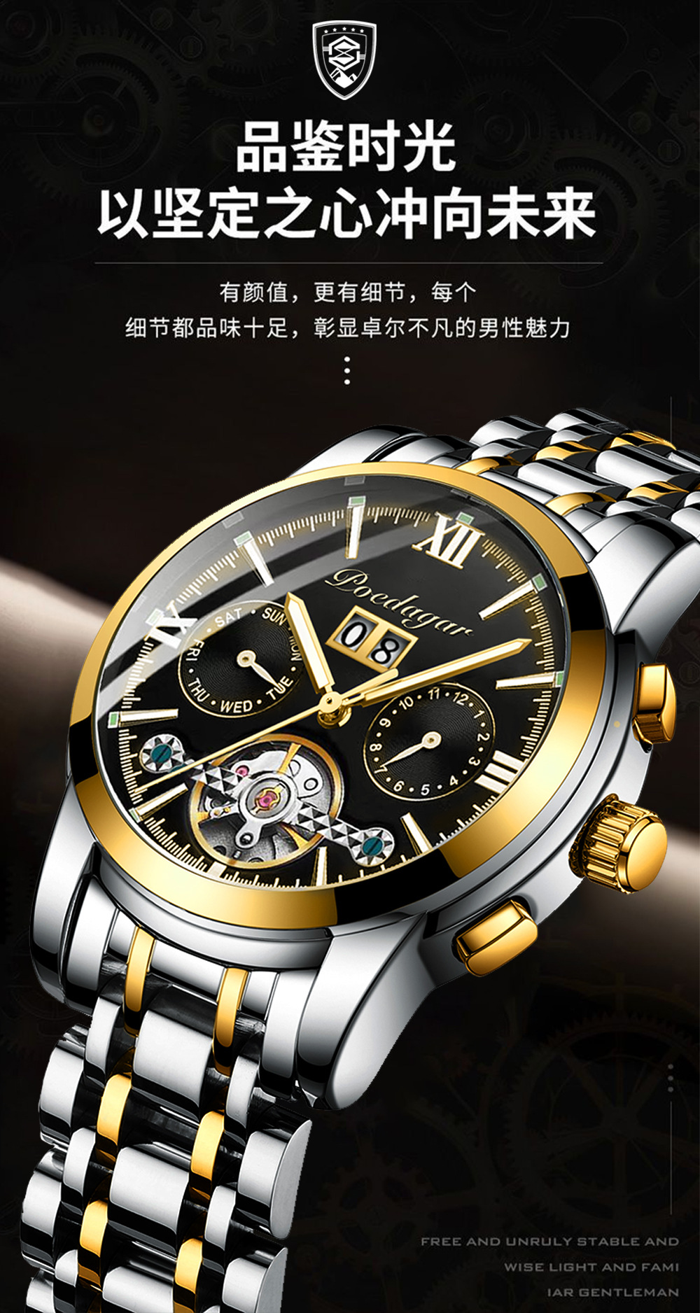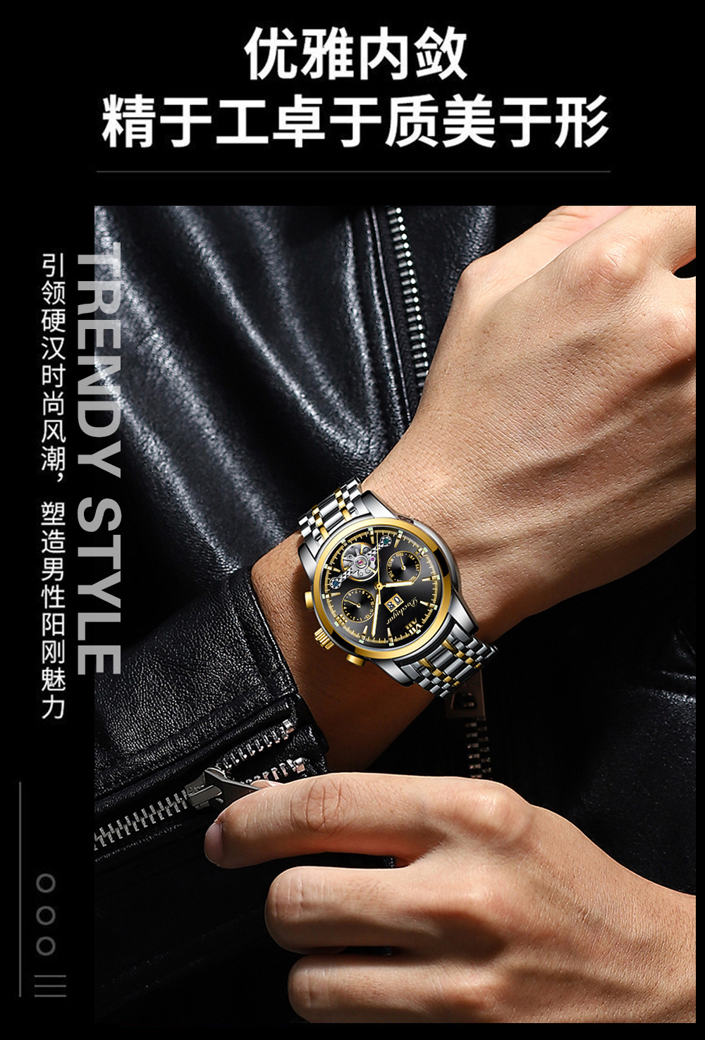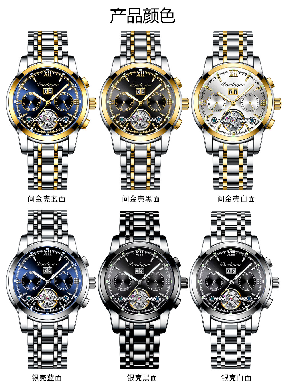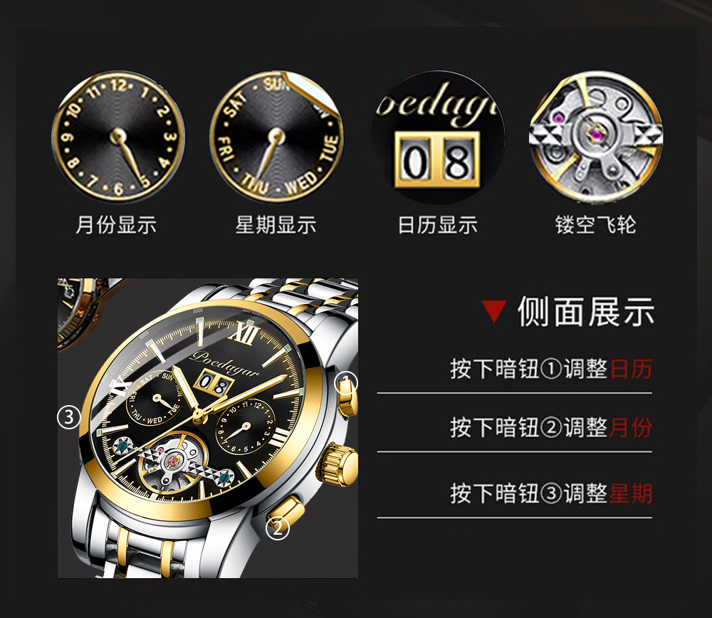 Marca Suiza reloj mecánico automático impermeable moda luminoso reloj de los hombres transmisión en vivo Comercio exterior popular entrega de una sola pieza