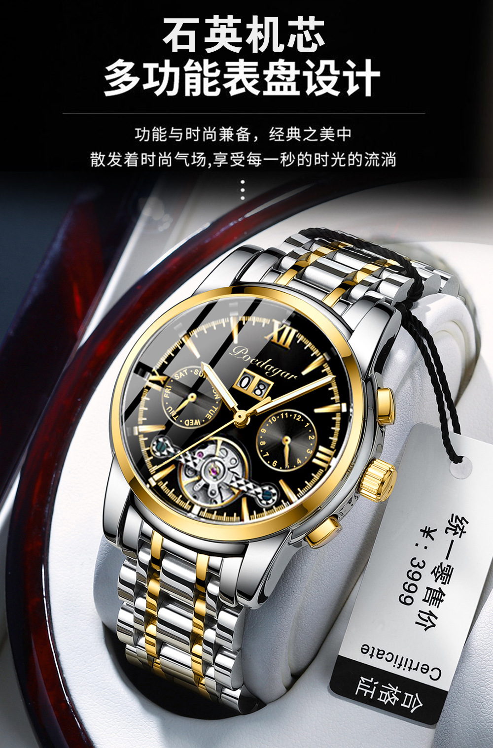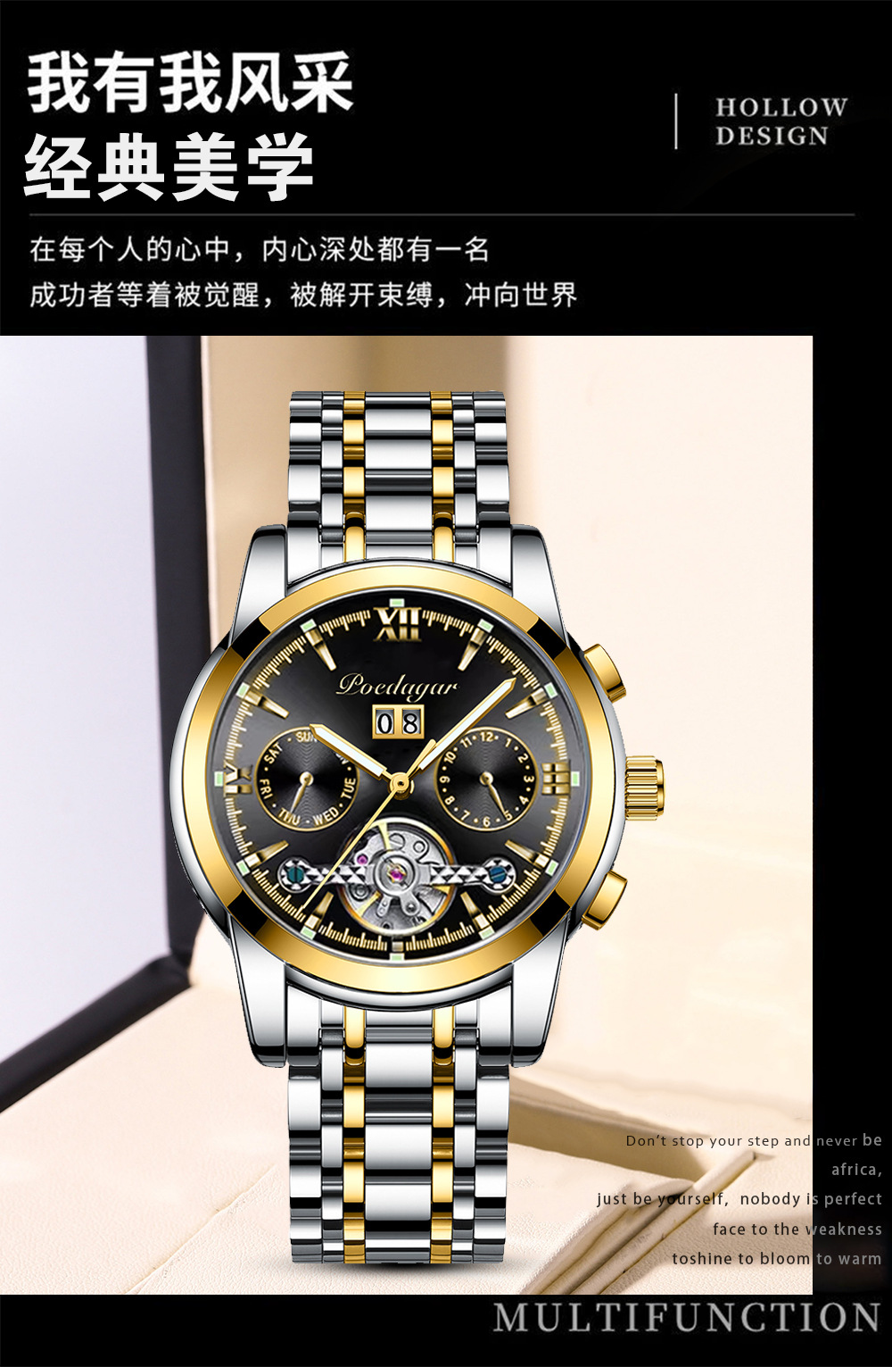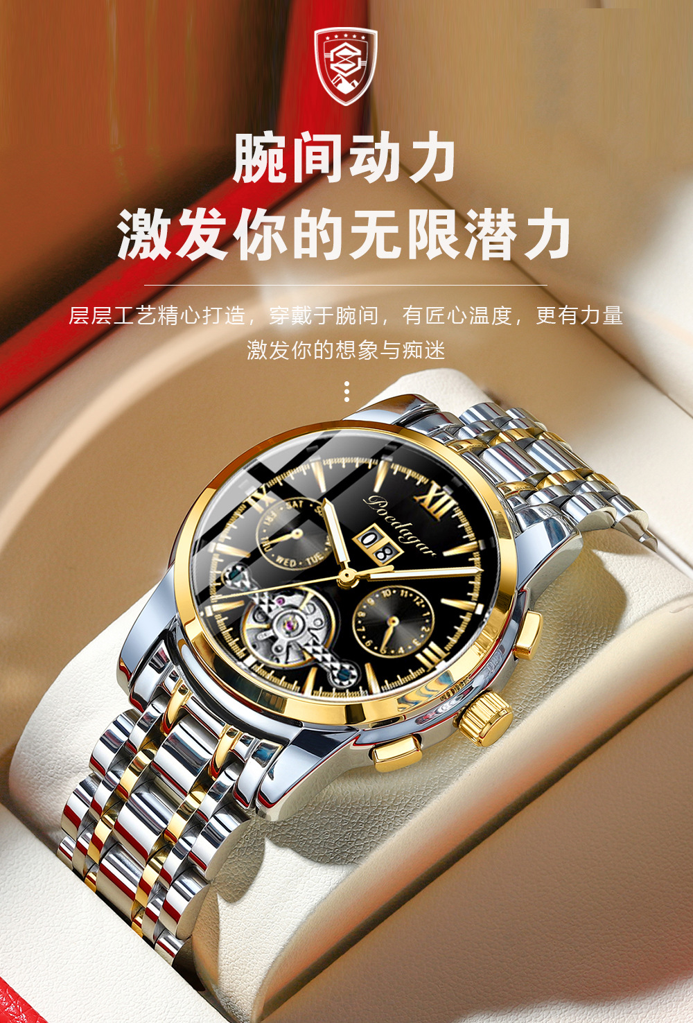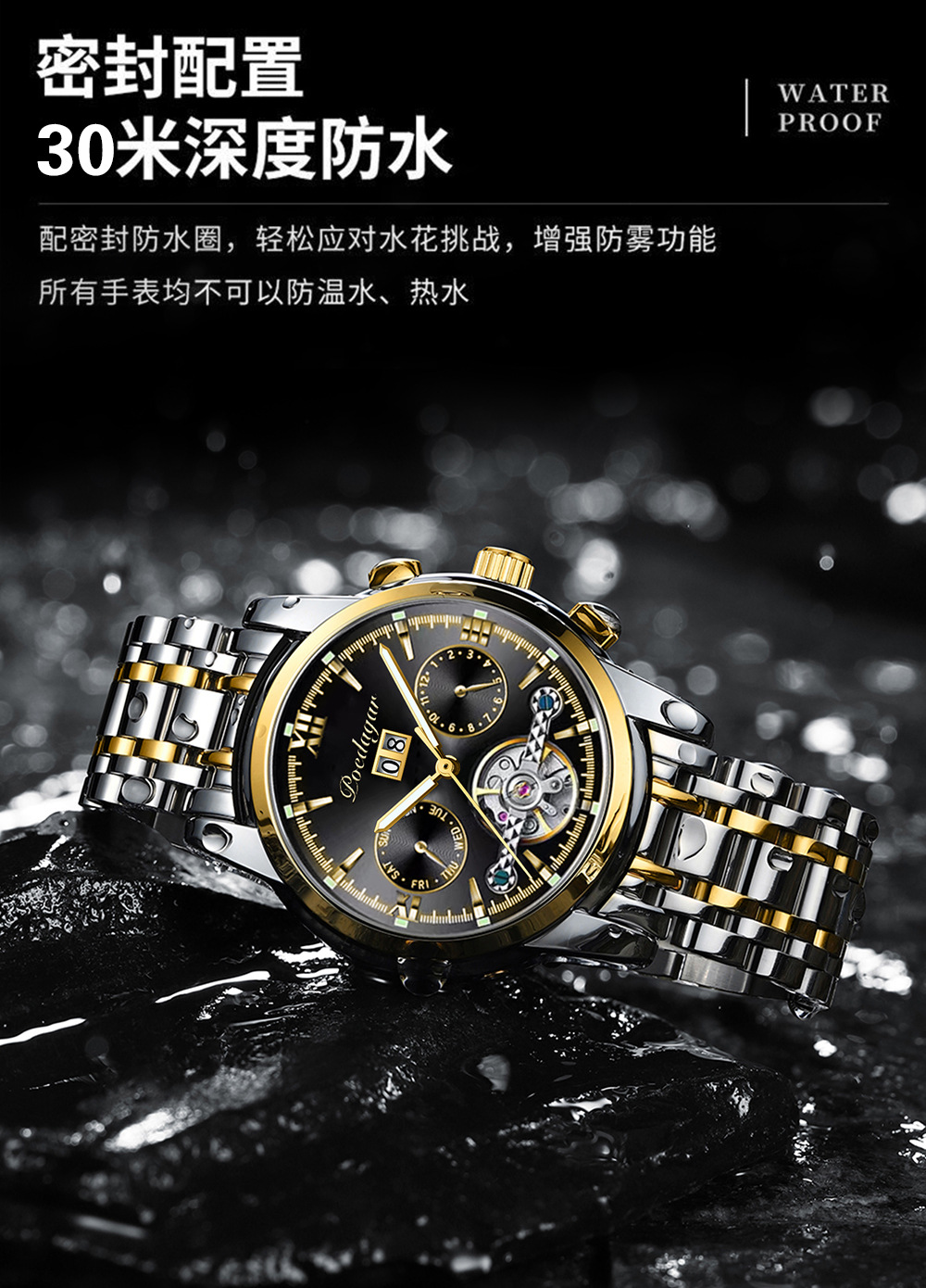 Marca Suiza reloj mecánico automático impermeable moda luminoso reloj de los hombres transmisión en vivo Comercio exterior popular entrega de una sola pieza