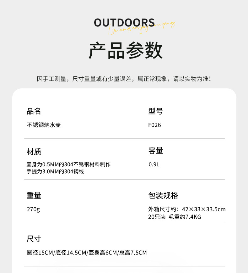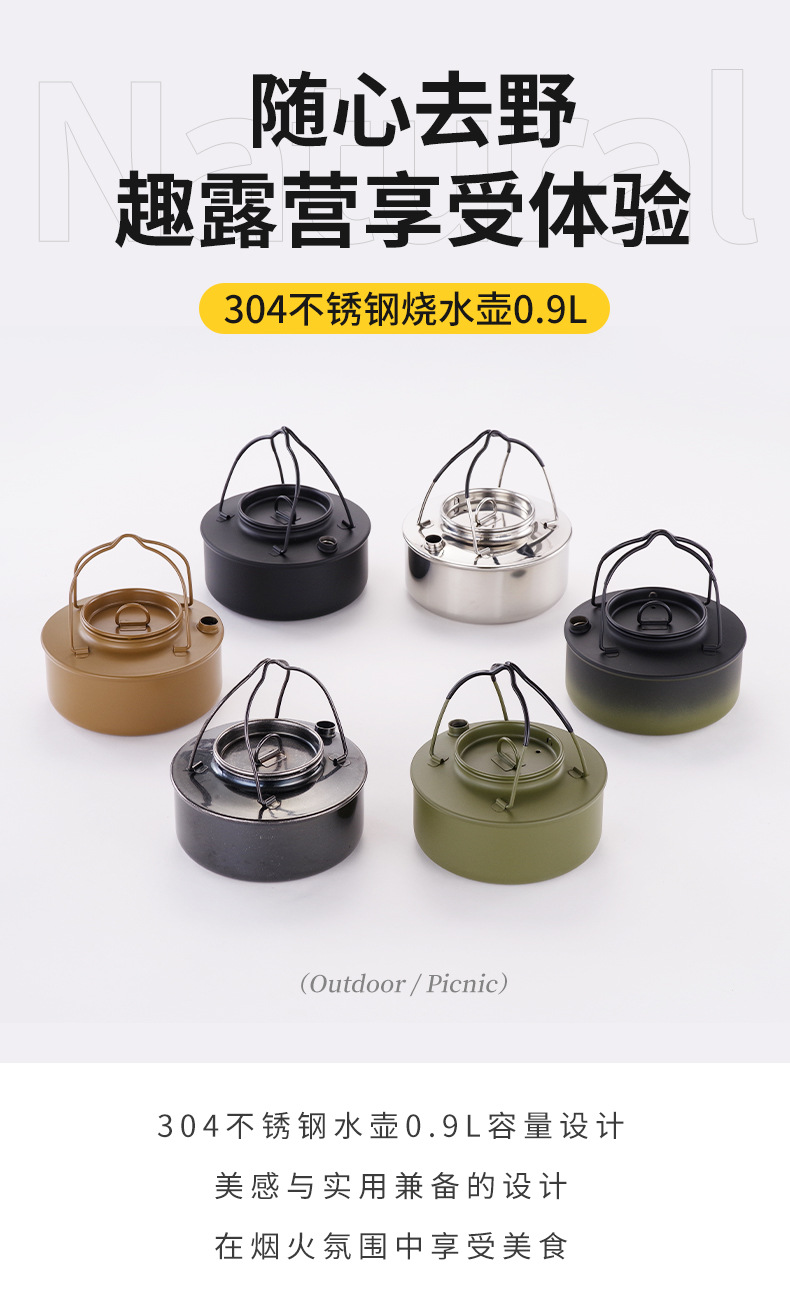 0.9L hervidor de agua portátil acampar al aire libre de acero inoxidable de calidad alimentaria hervidor de agua