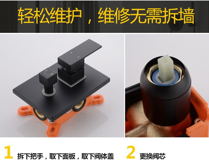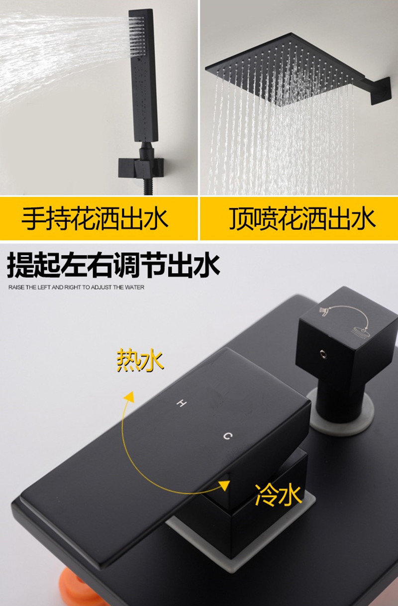 Juego de ducha de ducha oculta cuadrada negra grifo de ducha empotrado ducha fría y caliente incrustada oculta