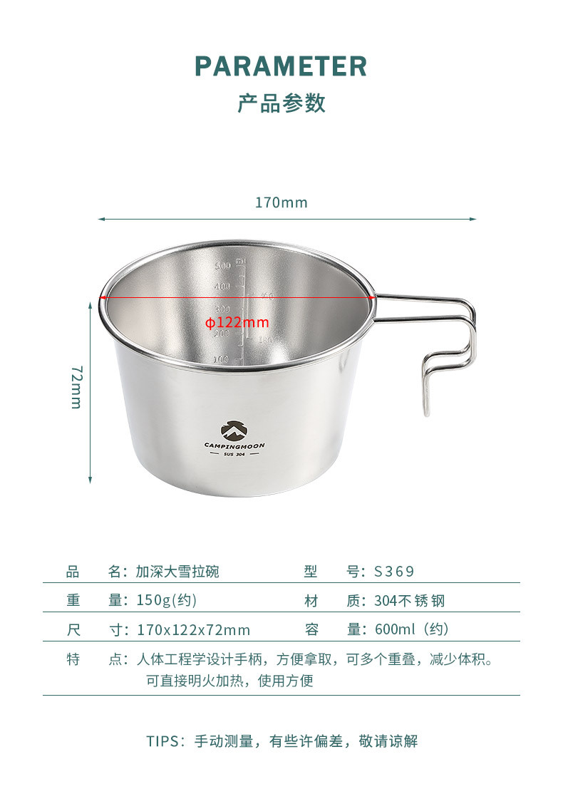 Coman S369 Profundización de gran capacidad suministros camping con escala camping picnic de acero inoxidable fuego abierto ensaladera de calefacción