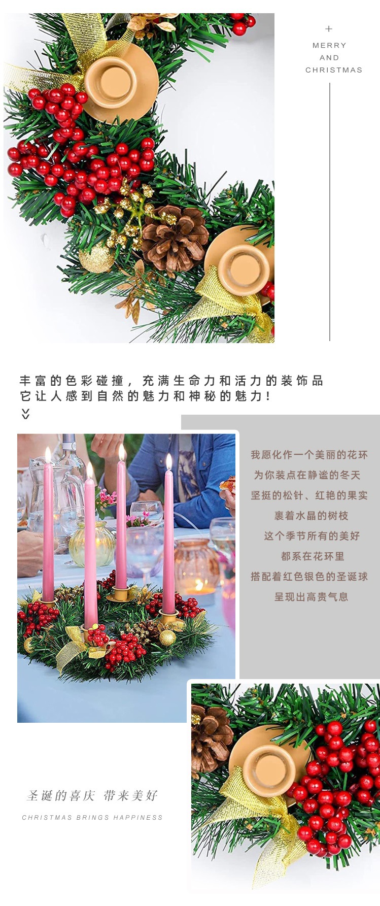 Cinta CORONA DE Navidad decoración de Navidad fábrica al por mayor Navidad candelabro Garland vela Copa Navidad candelabro de Navidad