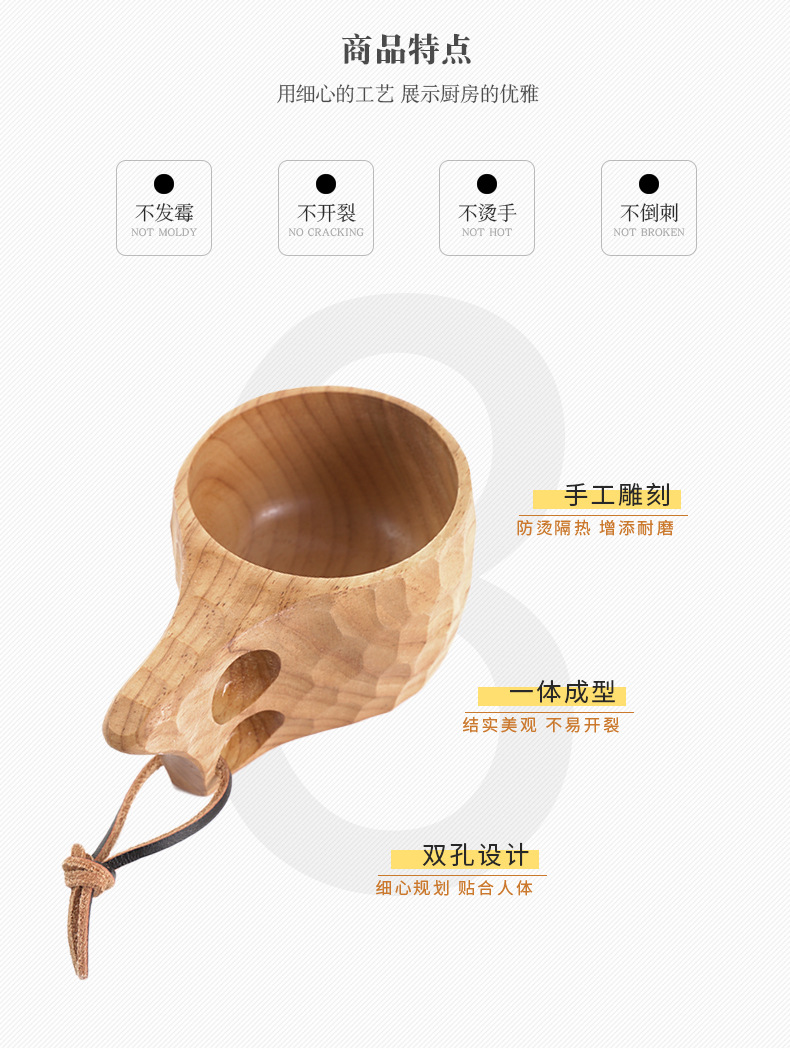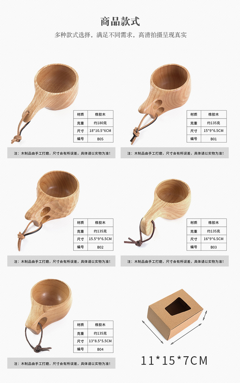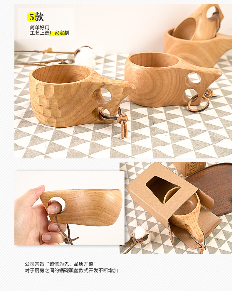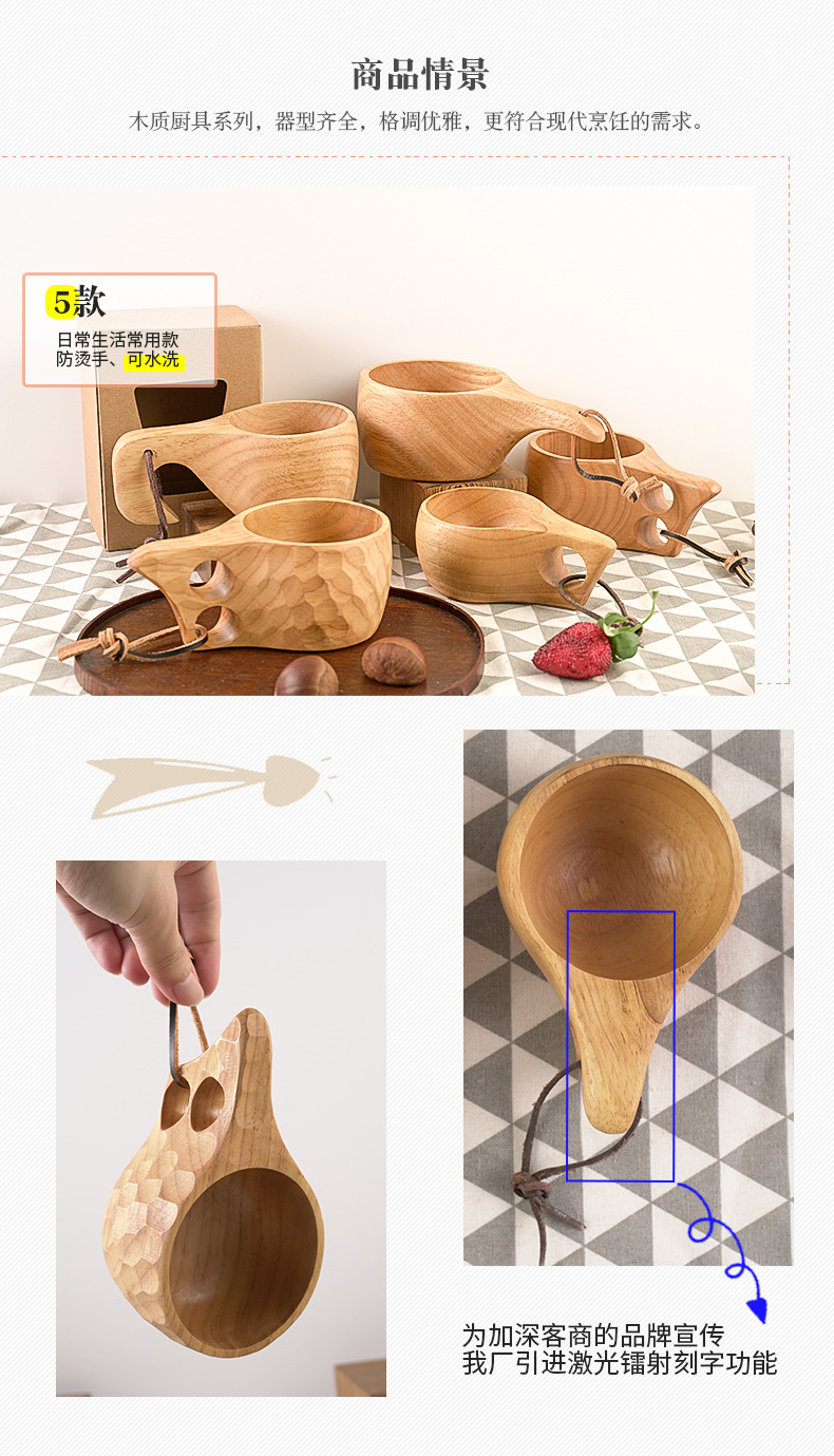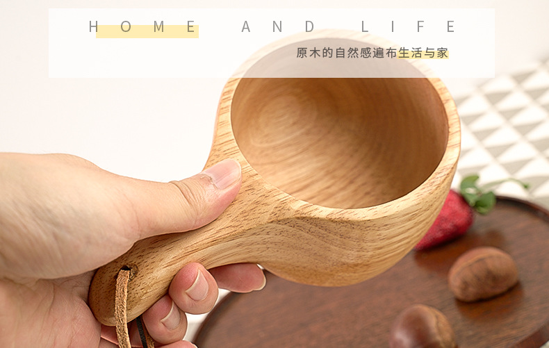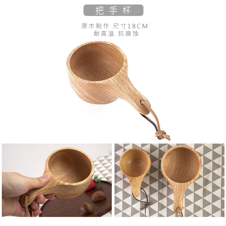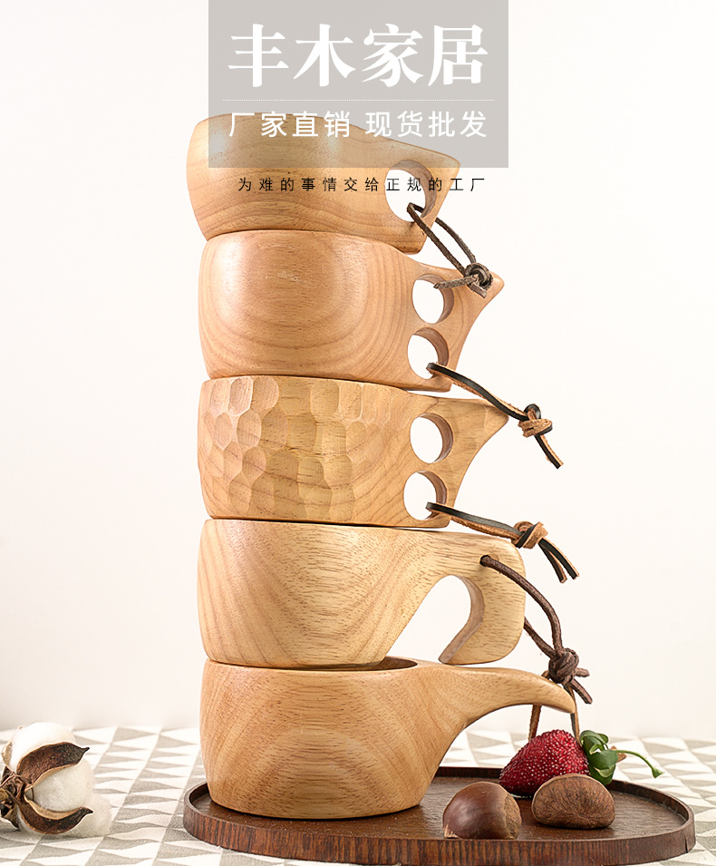 Madera de goma taza de madera creativo cordón nórdico taza de leche mango taza de café de madera práctico taza de agua logotipo al por mayor