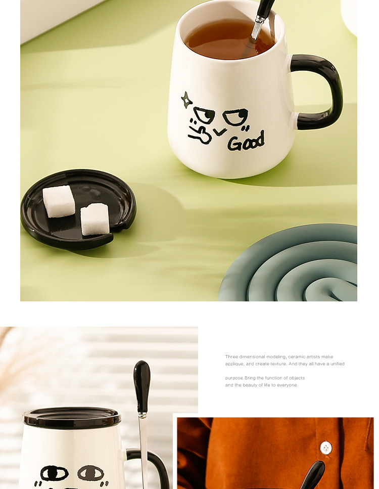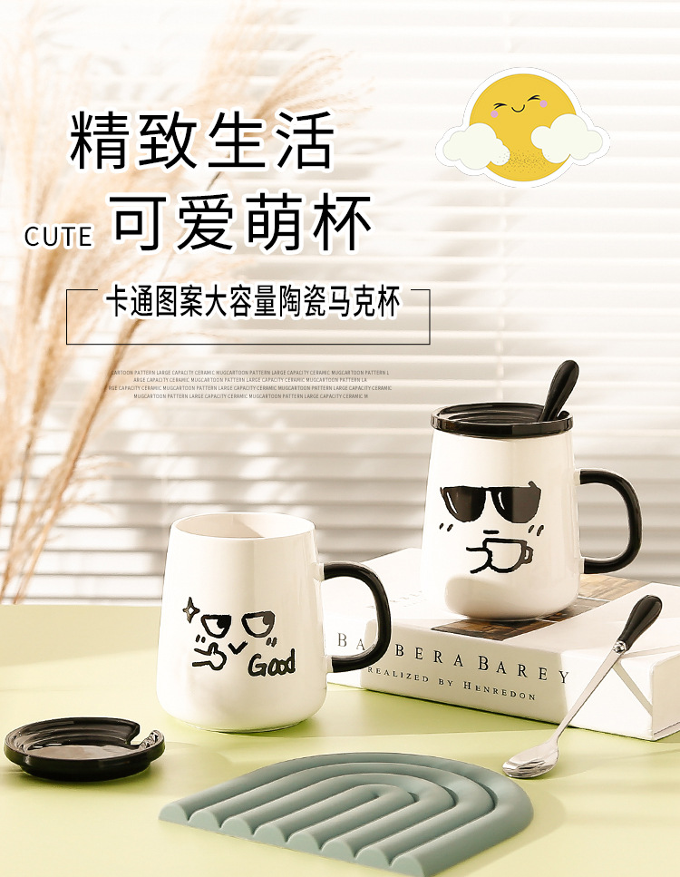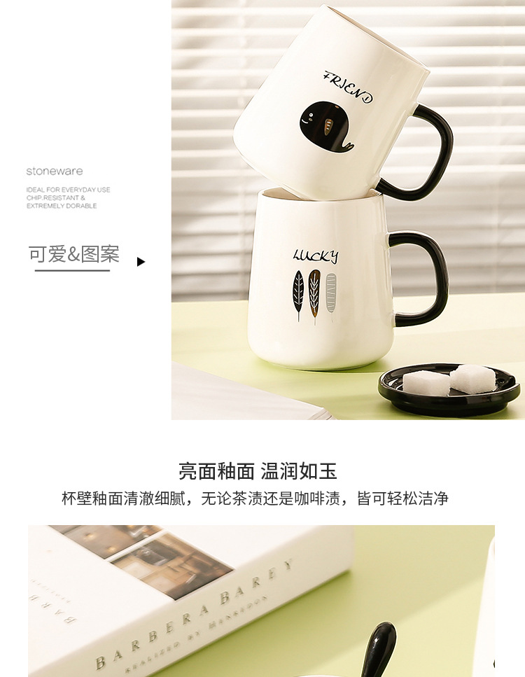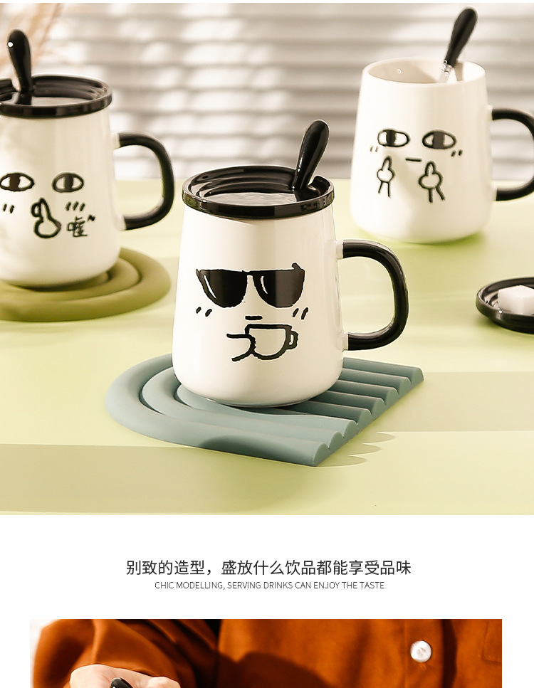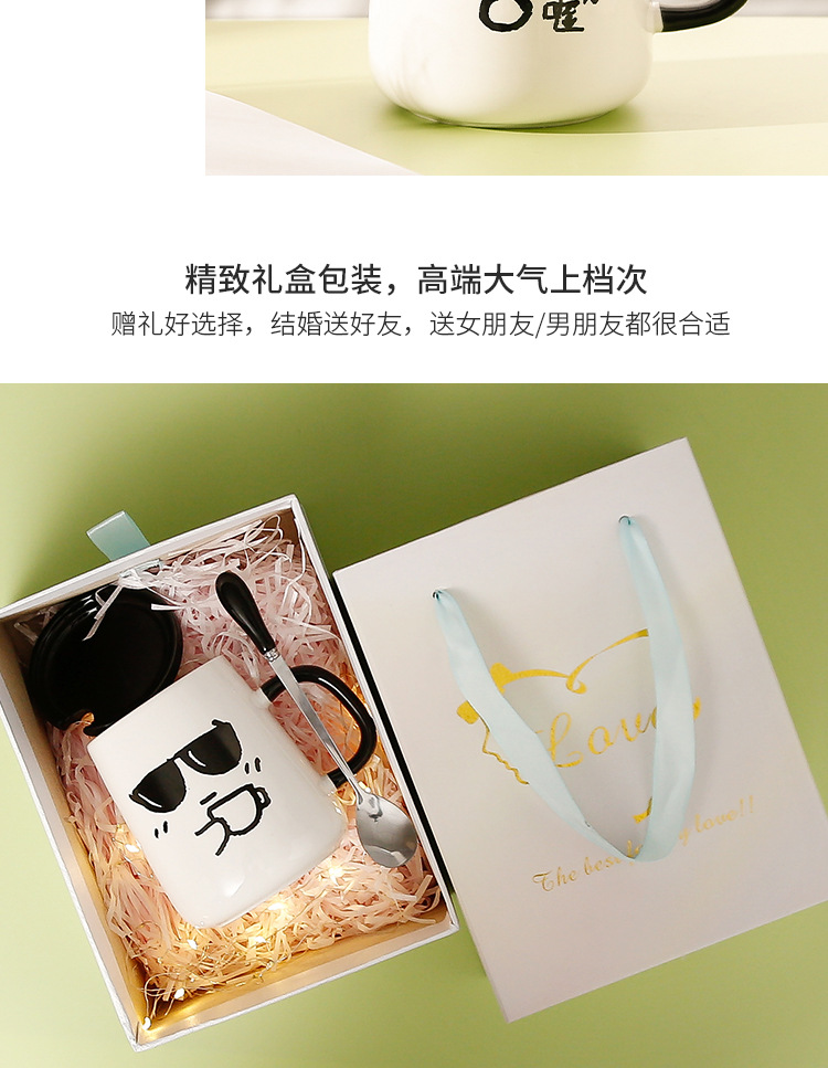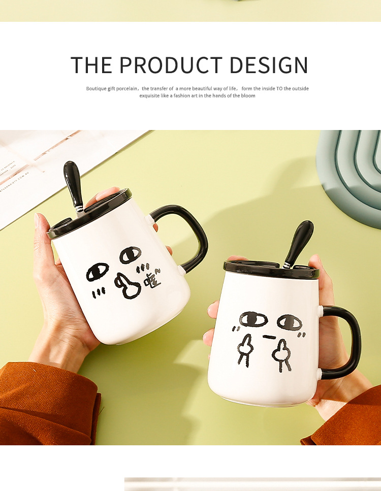 Creativo ins estilo de alta apariencia taza con tapa cuchara lindo taza de agua de cerámica divertido regalo de cumpleaños regalo
