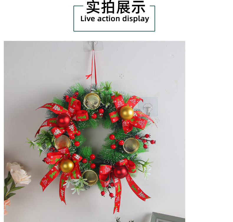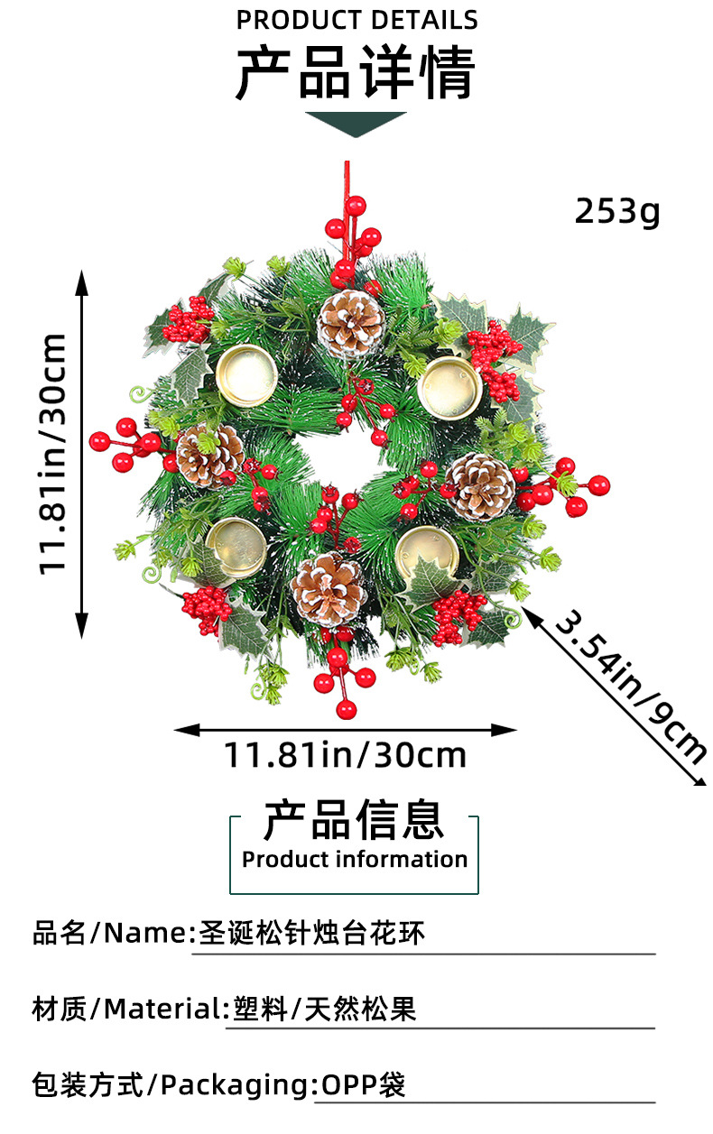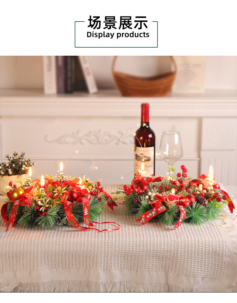 Guirnalda de Navidad creativa con candelabros, guirnalda artificial al por mayor de Amazon, candelabro con frutos rojos y agujas de pino, decoraciones para mesas de restaurante