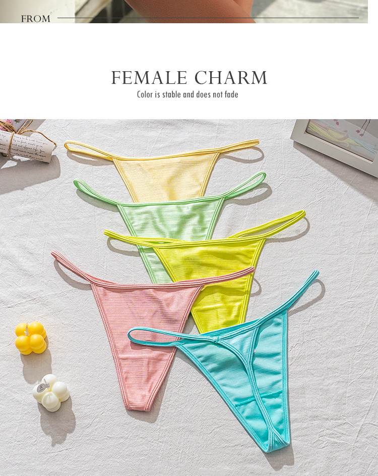 Nueva alta calidad nacarado tela ropa interior de las mujeres pequeño fresco dulce del color caramelo chica puro deseo sexy Tanga