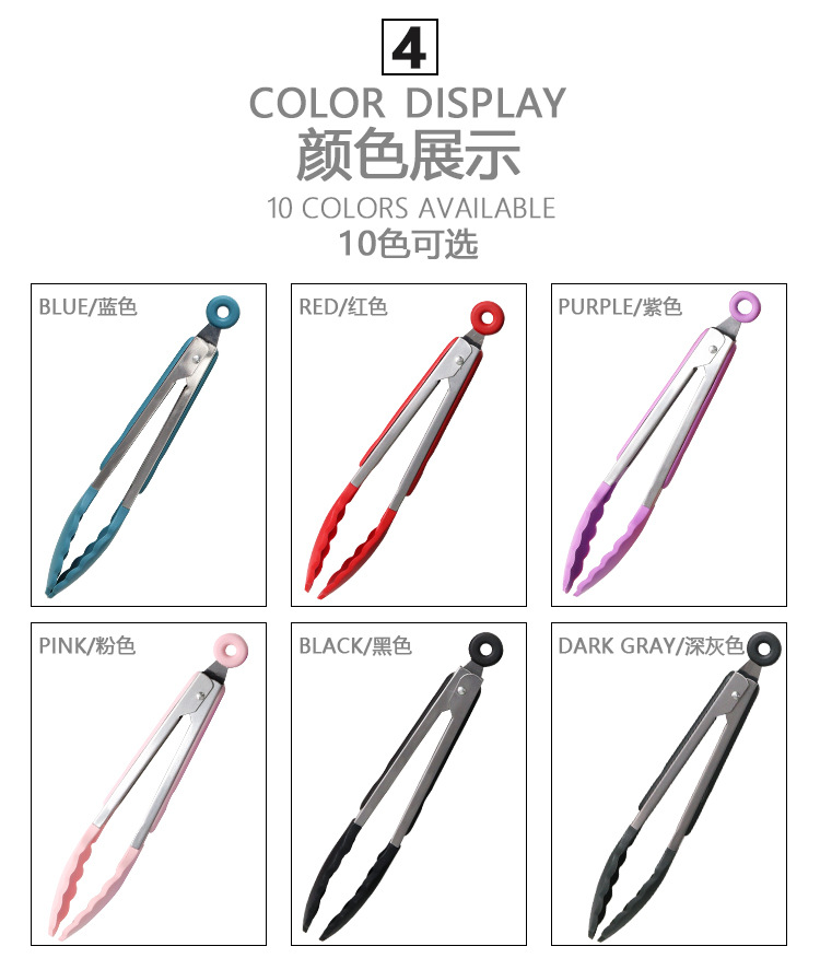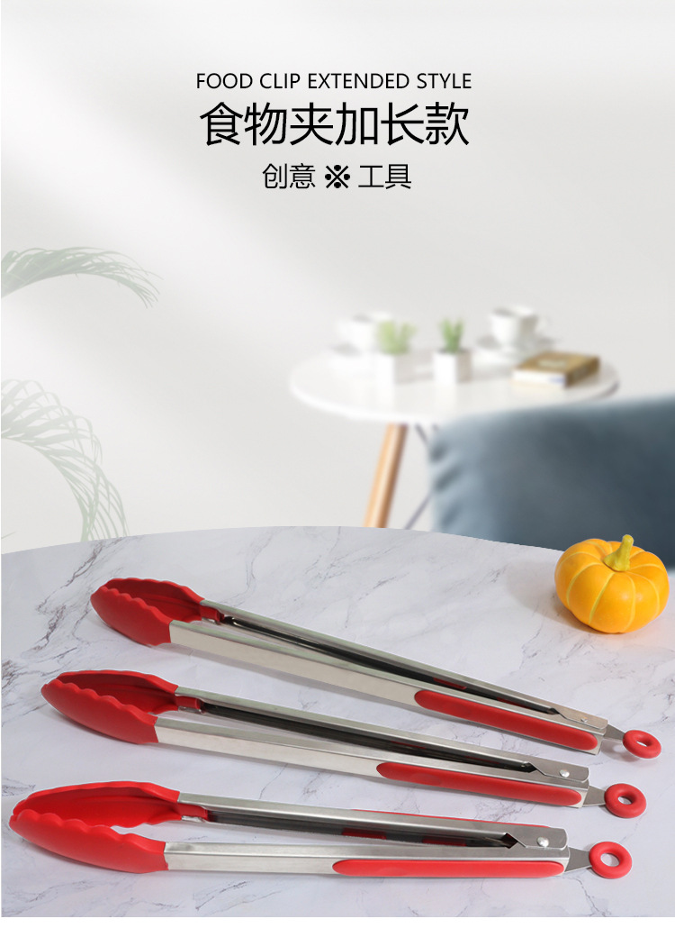 Pinzas de silicona para alimentos, pinzas de acero inoxidable para pan, pinzas para barbacoa coreana, pinzas para alimentos resistentes a altas temperaturas, pinzas para asar al por mayor
