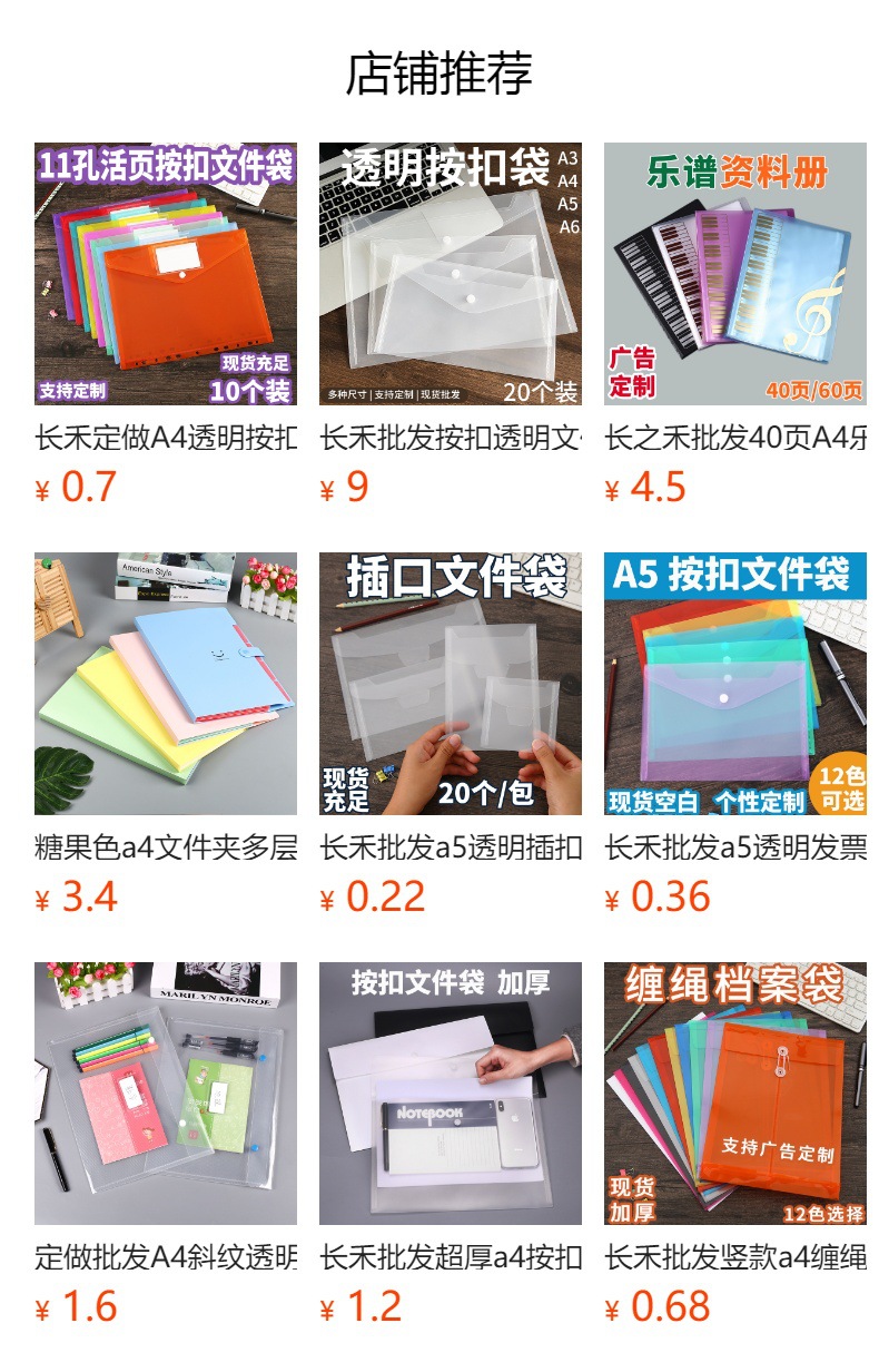 Changhe al por mayor A5 transparente hebilla bolsa de archivo factura engrosada horizontal A6 corte Etiqueta de almacenamiento herramienta abrasiva cuchillo vertical molde