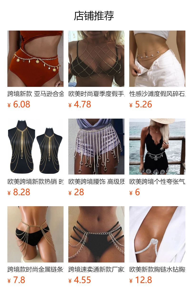 Europa y América transfronteriza nueva cadena de pierna de cadena múltiple caliente Cadena de muslo sexy Cadena de diamante femenino clip de múltiples capas Cadena de cuentas Cadena de cuerpo