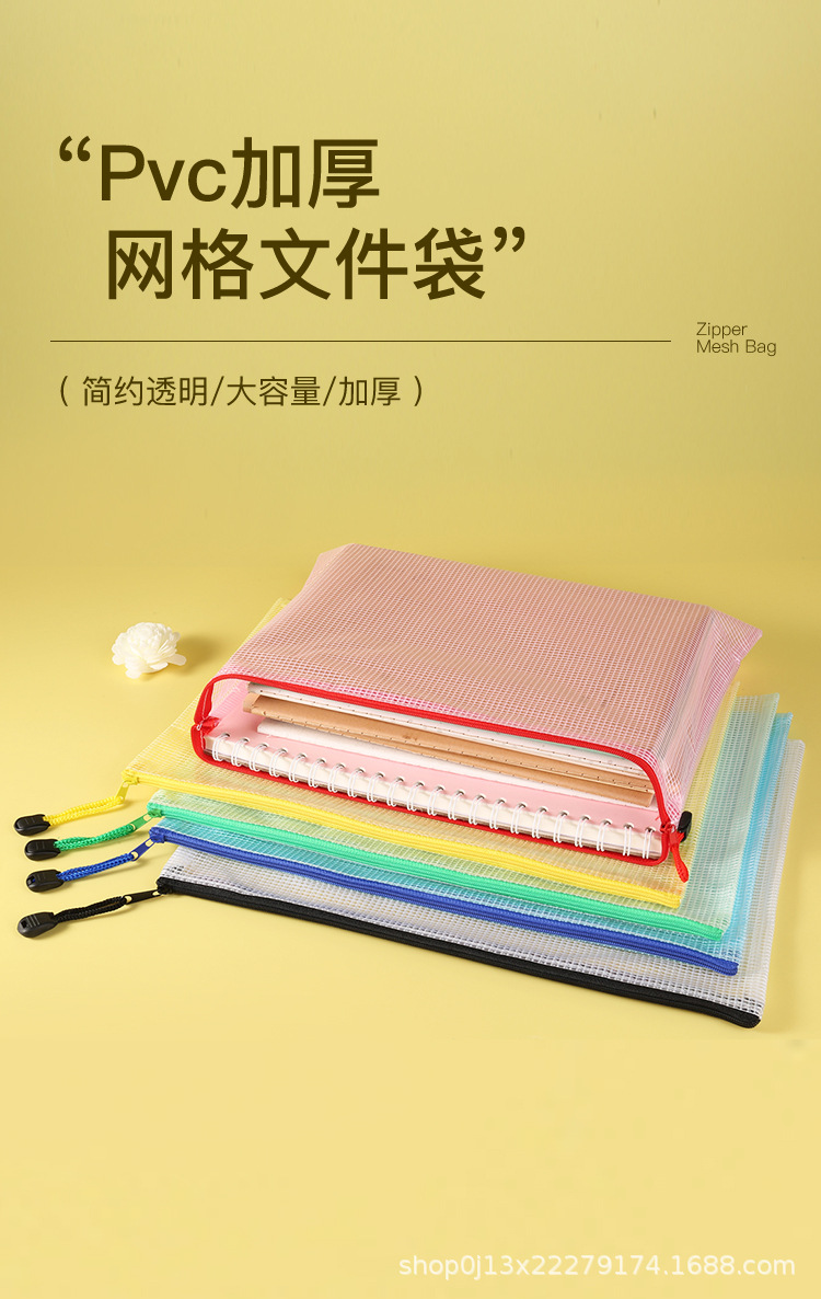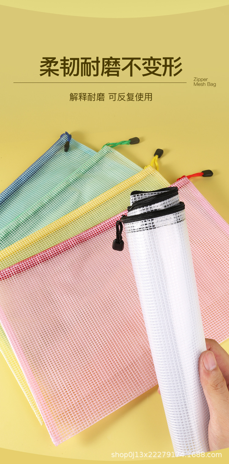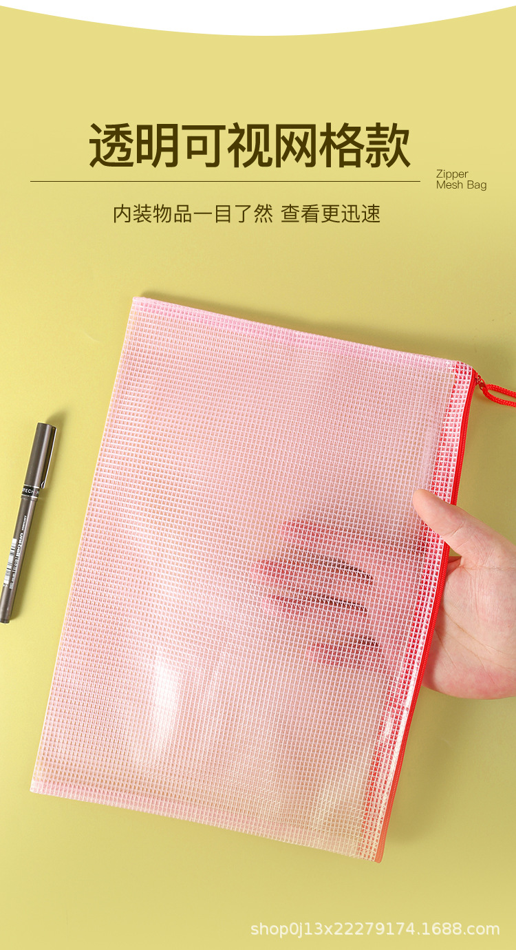 Directo de fábrica A4 bolsa de archivo transparente bolsa de malla de cremallera engrosada bolsa de papelería de estudiante a prueba de agua bolsa de archivo de material