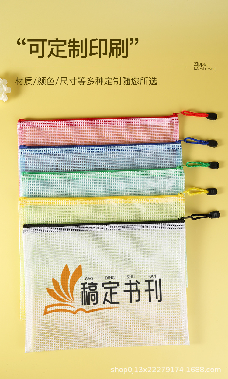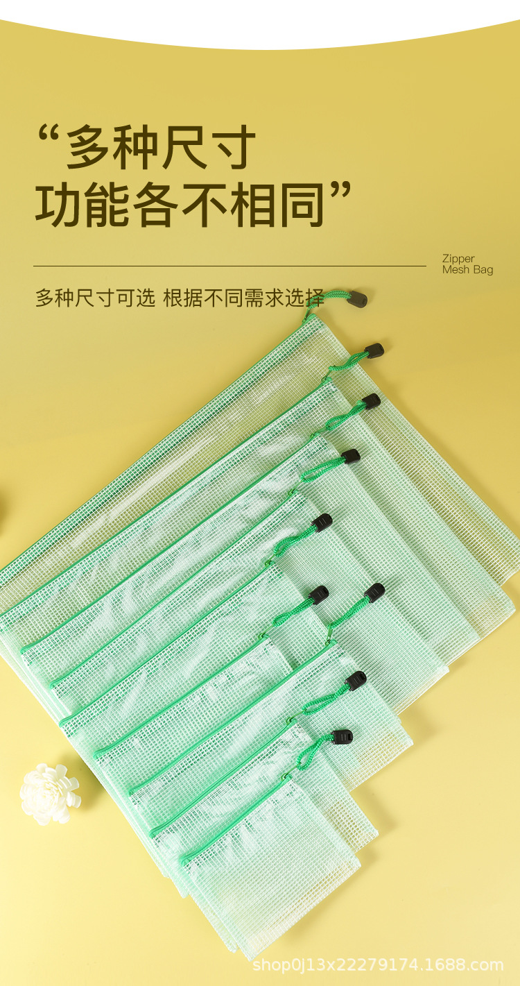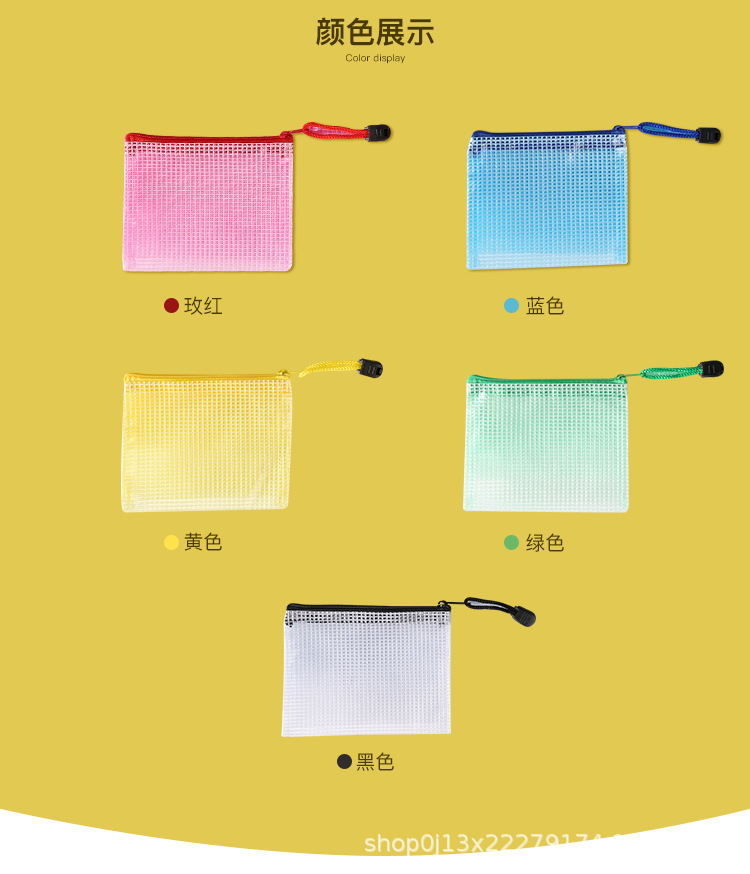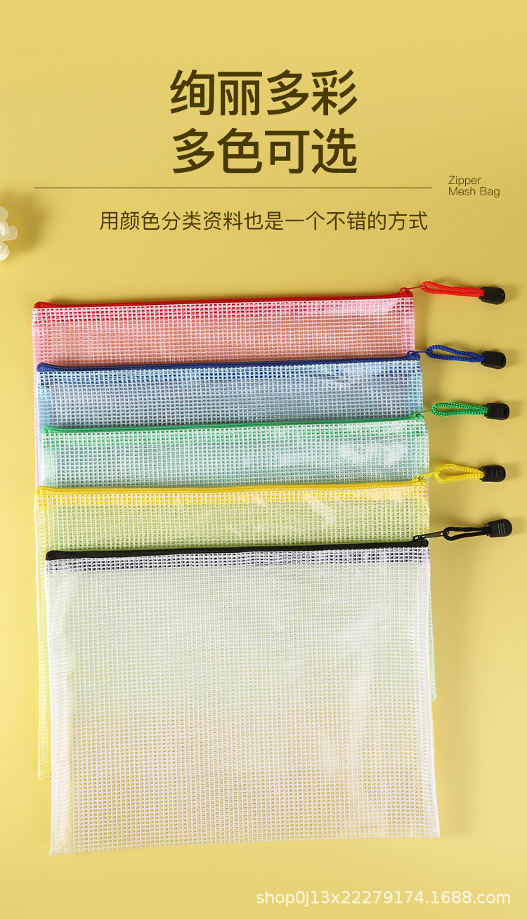 Directo de fábrica A4 bolsa de archivo transparente bolsa de malla de cremallera engrosada bolsa de papelería de estudiante a prueba de agua bolsa de archivo de material