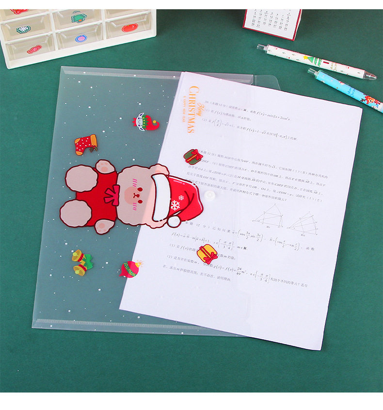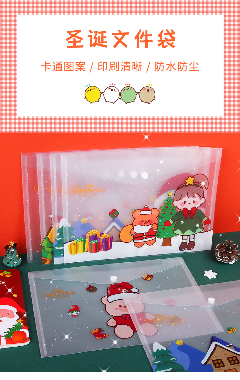 Bolsa de archivo A4 de Navidad de PVC de dibujos animados bolsa de papel de prueba de gran capacidad bolsa de almacenamiento de oficina bolsa de información de clasificación transparente
