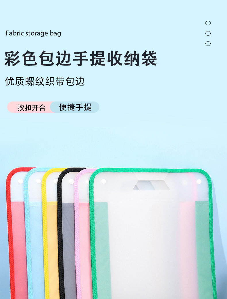 Amazon bolsa de almacenamiento de gran capacidad Oxford Borde de tela bolsa de archivo portátil estudiante Snap esmerilado prueba bolsa de papel al por mayor