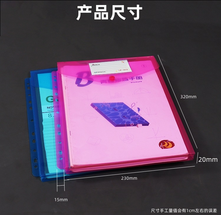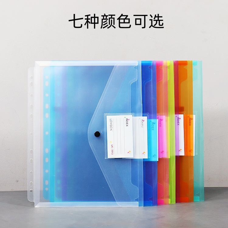 Amazon creativo transparente A4 bolsa de archivos de hojas sueltas Botón de 11 agujeros bolsa de información tridimensional de gran capacidad tapa de archivo