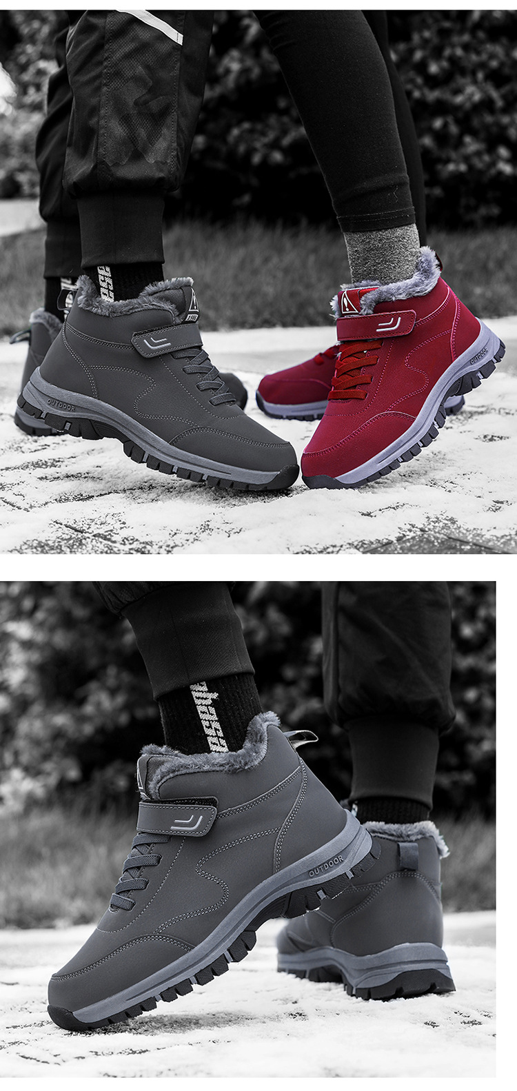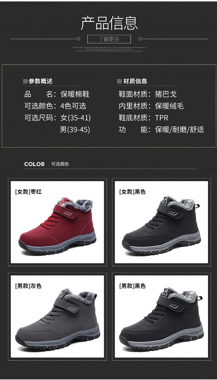 Botas de nieve transfronterizas para hombres y mujeres de invierno zapatos de algodón grueso forrado de lana para hombres botas cálidas para hombres zapatos altos de media pantorrilla en stock al por mayor
