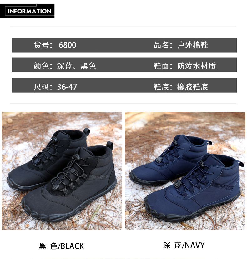 Directo de fábrica transfronteriza invierno grueso impermeable zapatos acolchados de algodón botas de nieve de cinco dedos cálido cómodo par de zapatos de nieve de alta