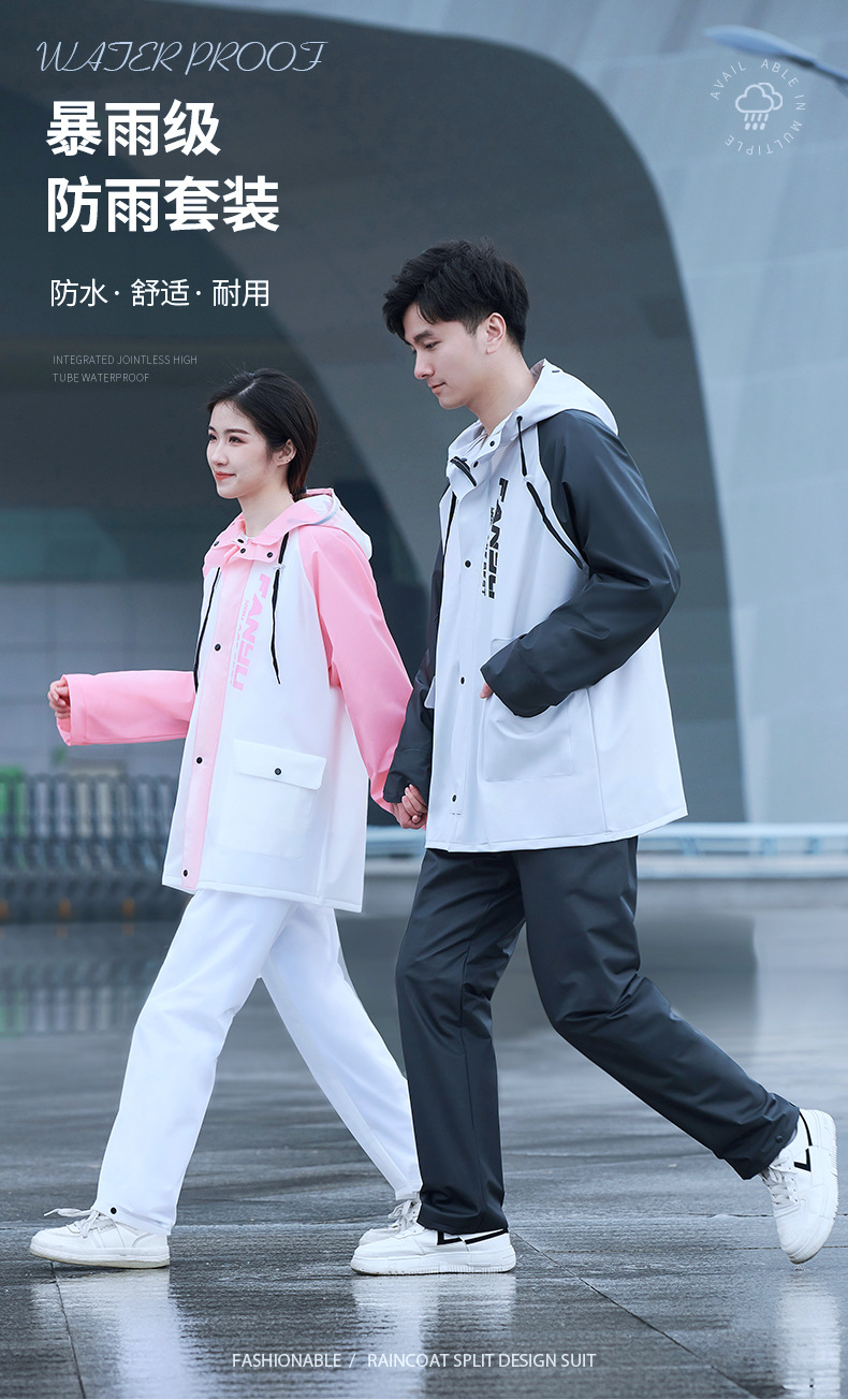 Conjunto de impermeable y pantalones de lluvia de moda al por mayor transfronterizo para hombres y mujeres, adecuado para senderismo, repartidores de entregas y motociclistas, impermeable para lluvias intensas, TikTok.