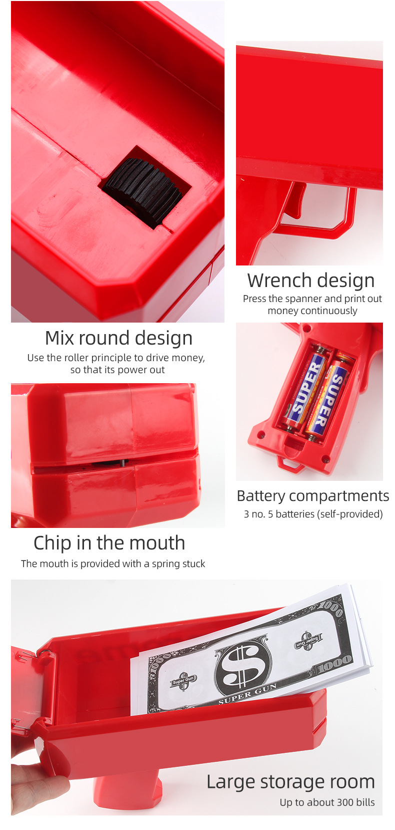 Nuevo y peculiar 60 pistolas de inyección de dinero eléctricas, pistolas de dinero, pistolas de inyección de dinero en dólares estadounidenses, pistolas de inyección de dinero, juguetes de pistola de escupir dinero