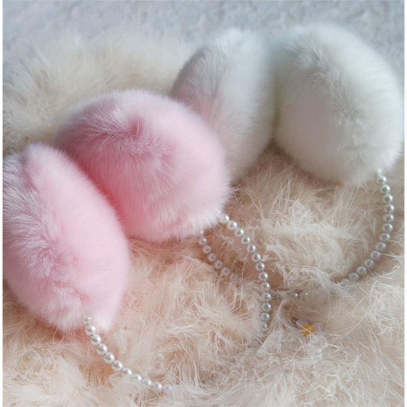 Nueva caliente lindo orejeras de felpa de invierno caliente a prueba de frío fábrica al por mayor de piel de conejo orejeras piel