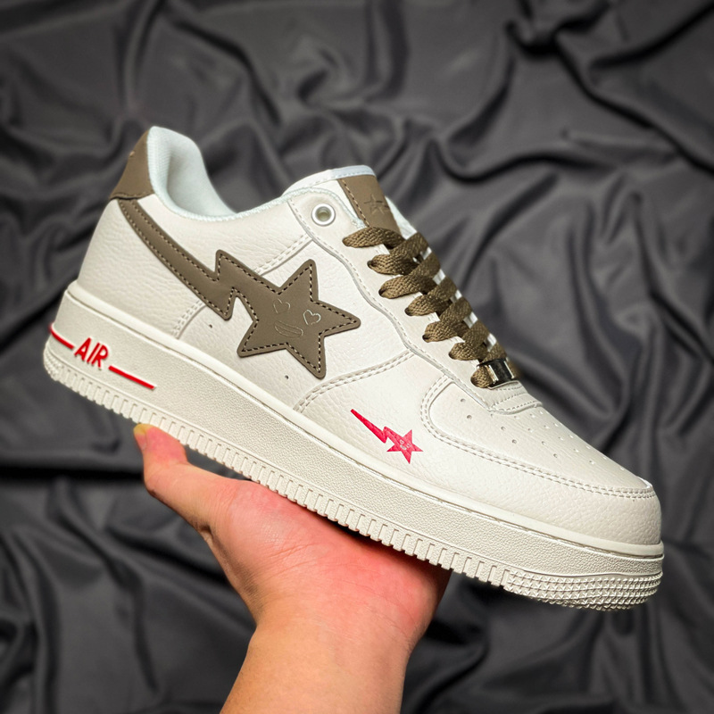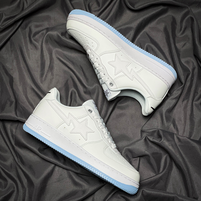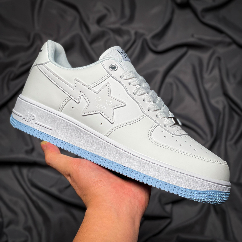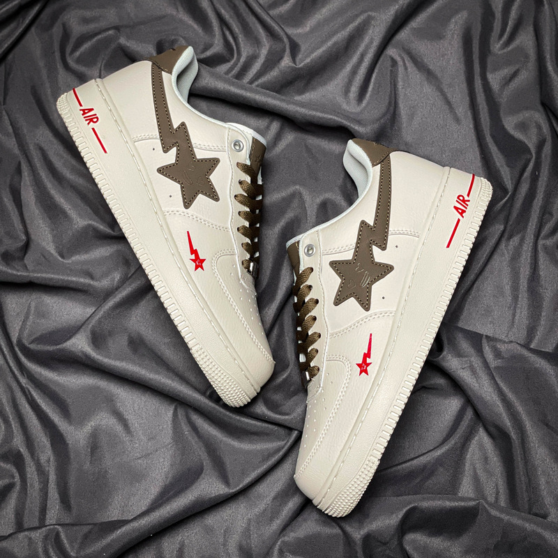 Fuerza Aérea N ° 1 Putian zapatos blancos originales puros hueso hielo blanco Azul Rayo estrella bajo Top leche café zapatilla de deporte de los hombres y las mujeres primera capa de vaca