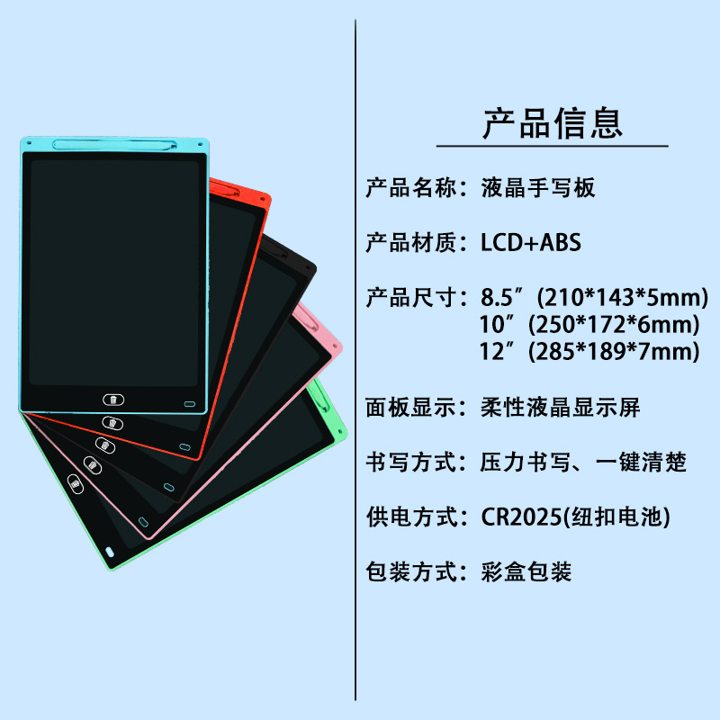 Tablero de dibujo para niños Tablero de escritura a mano LCD Pintura de graffiti Tablero de escritura electrónico Tablero pintado a mano Pantalla a color de 8.5/10/12 pulgadas