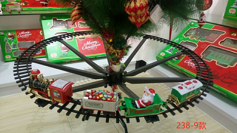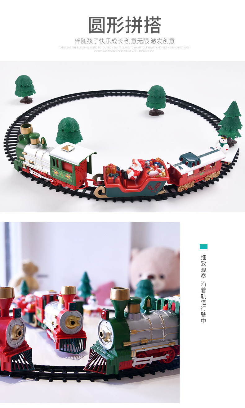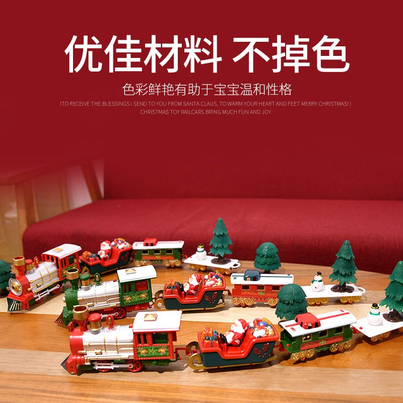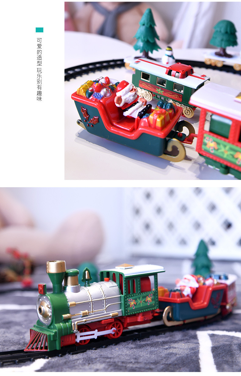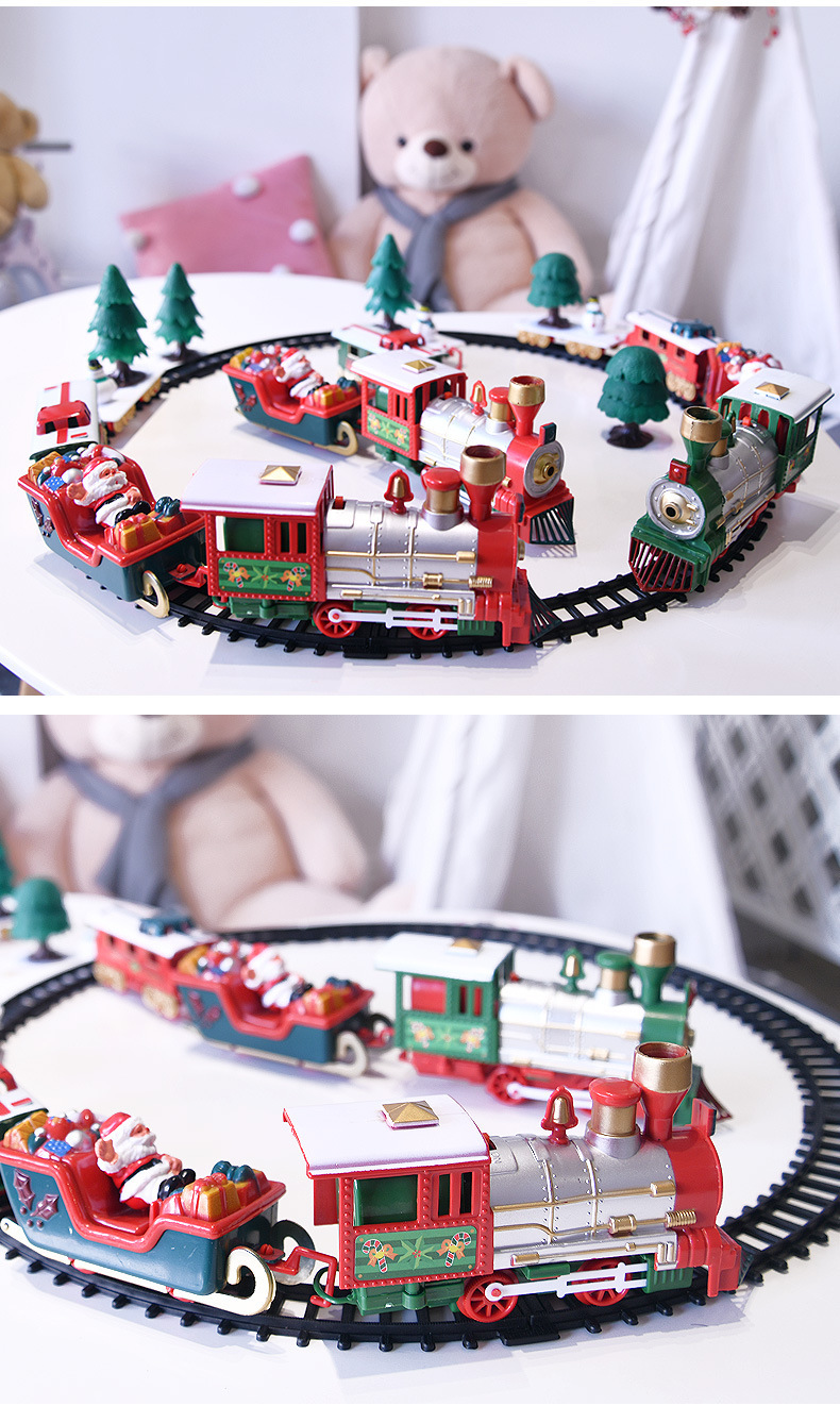 Transfronteriza venta caliente juguetes de navidad coche de ferrocarril eléctrico pequeño tren adornos regalos de navidad juguetes educativos para niños