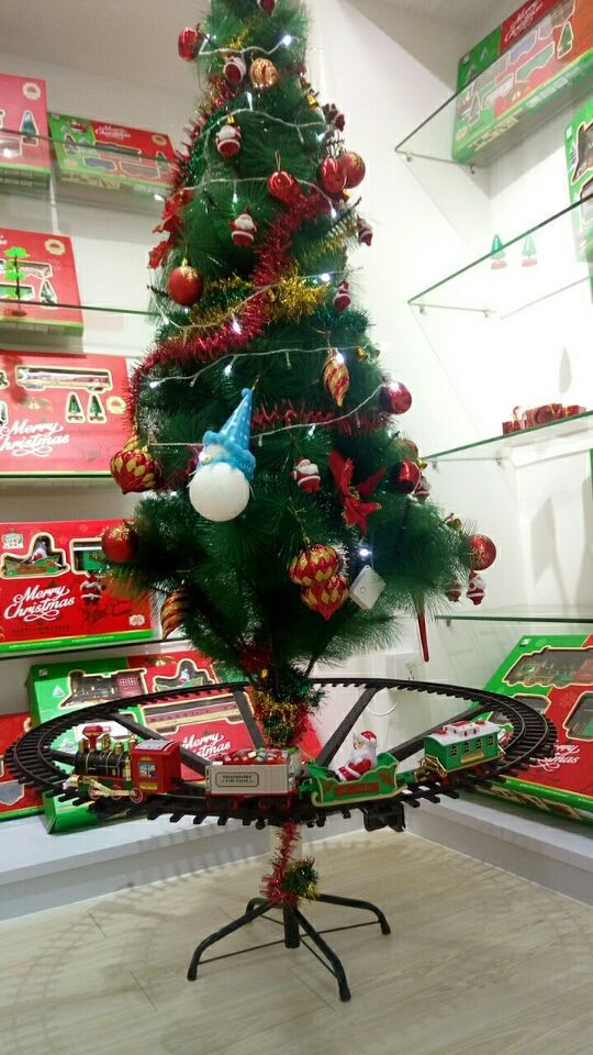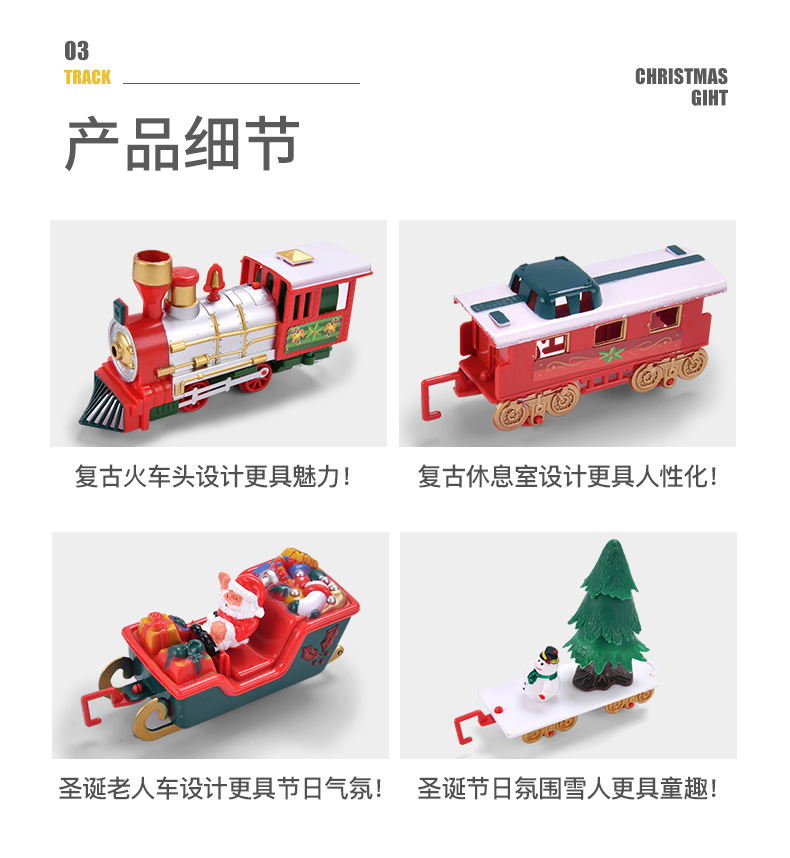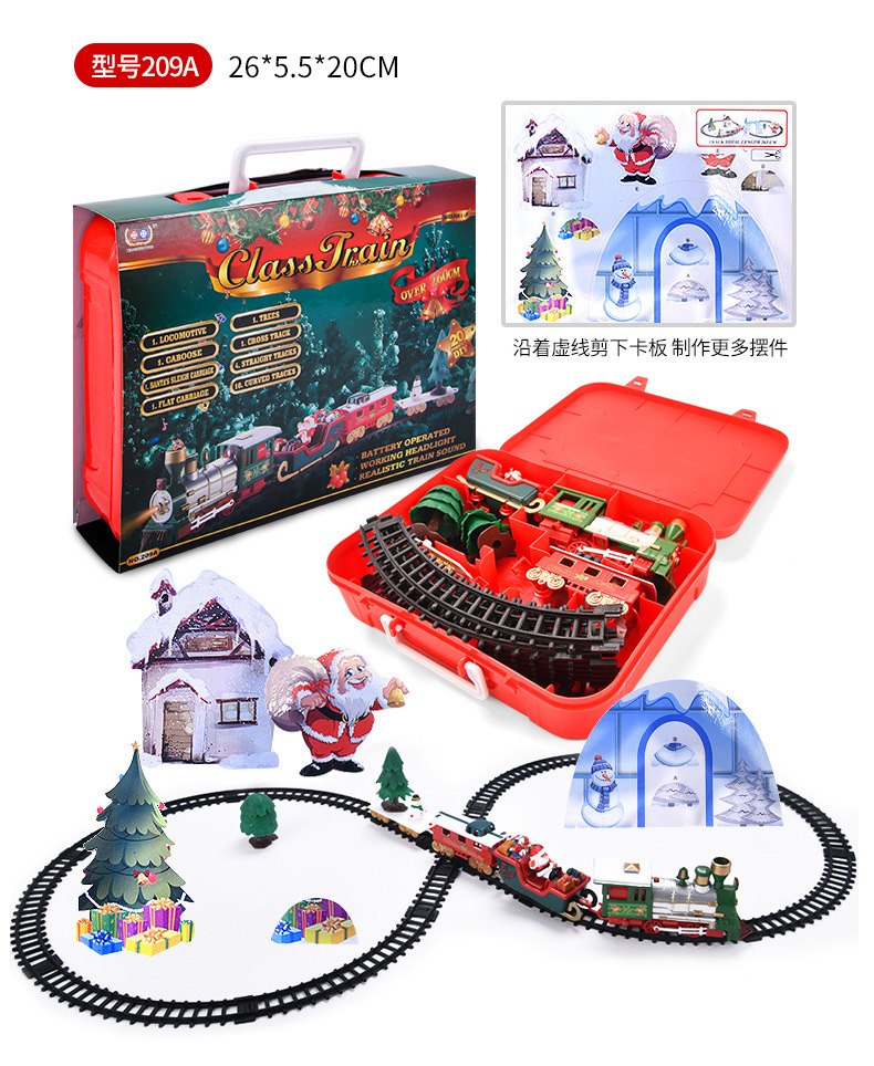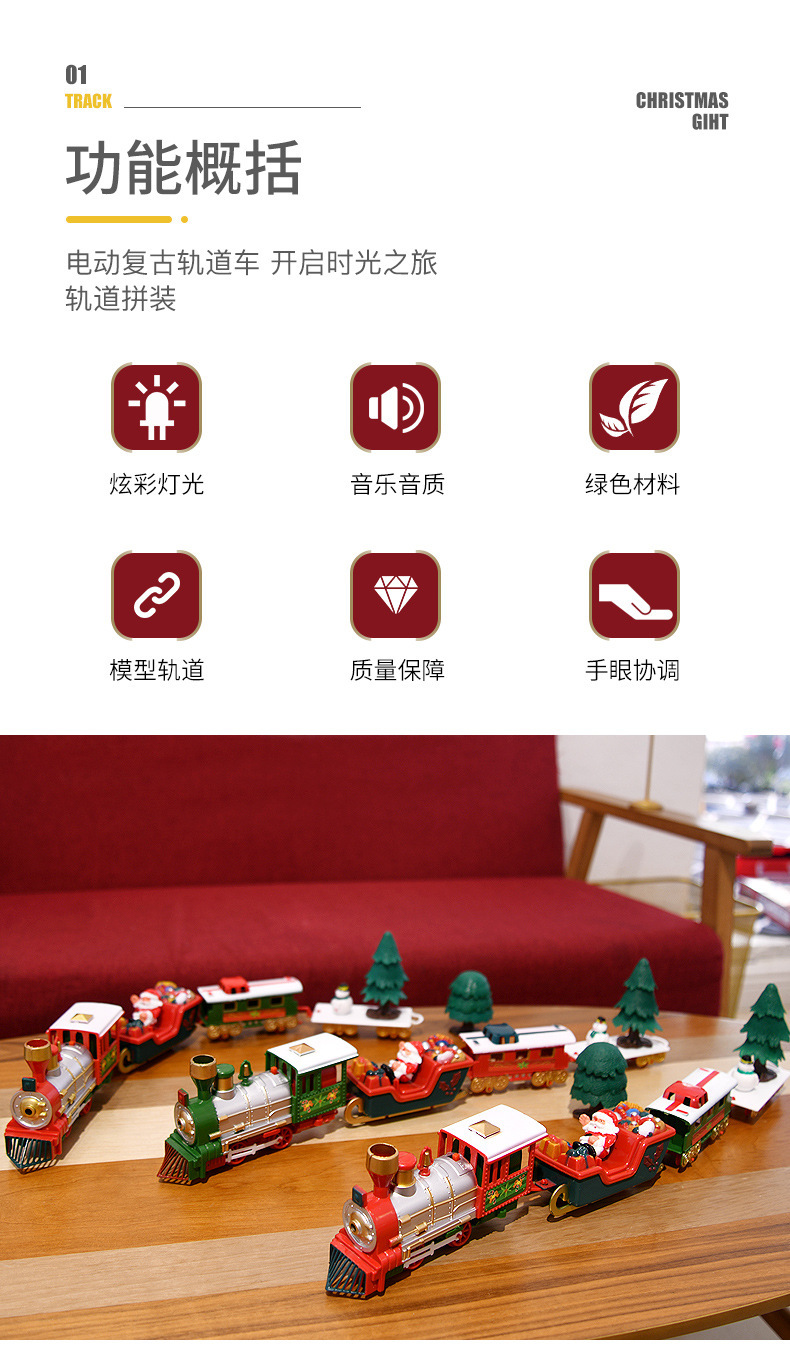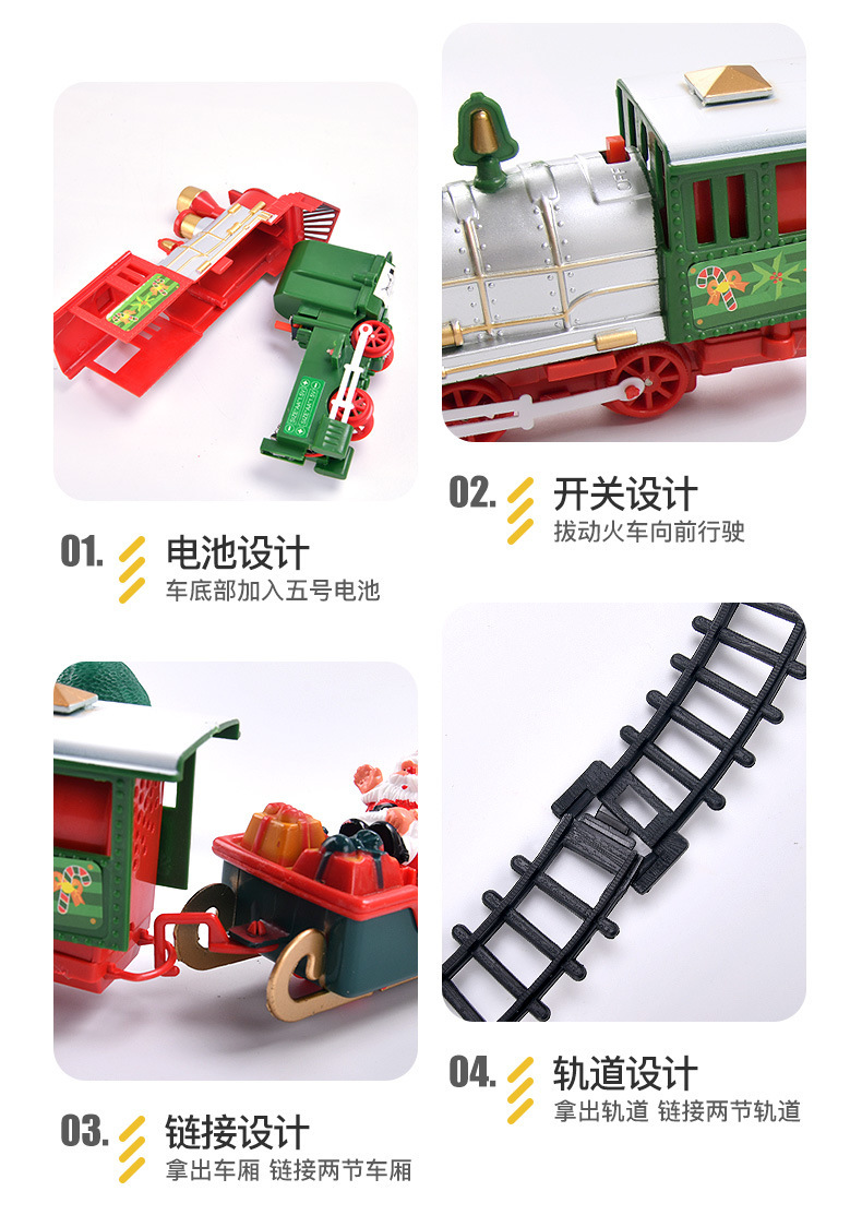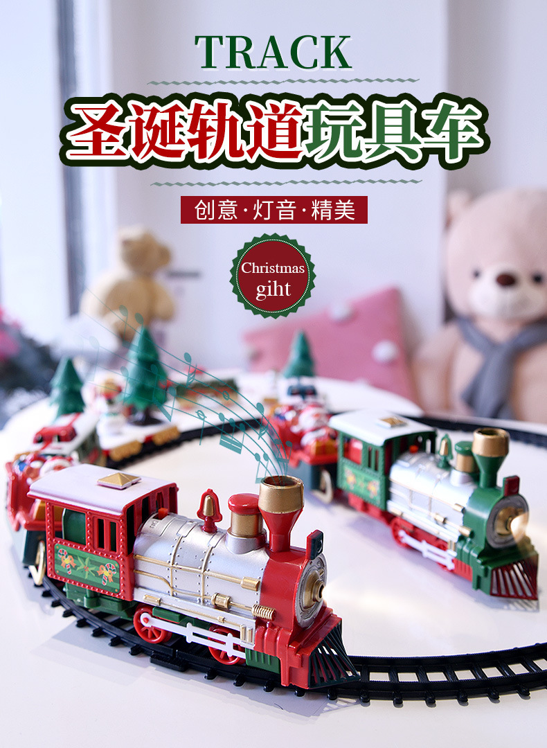Transfronteriza venta caliente juguetes de navidad coche de ferrocarril eléctrico pequeño tren adornos regalos de navidad juguetes educativos para niños