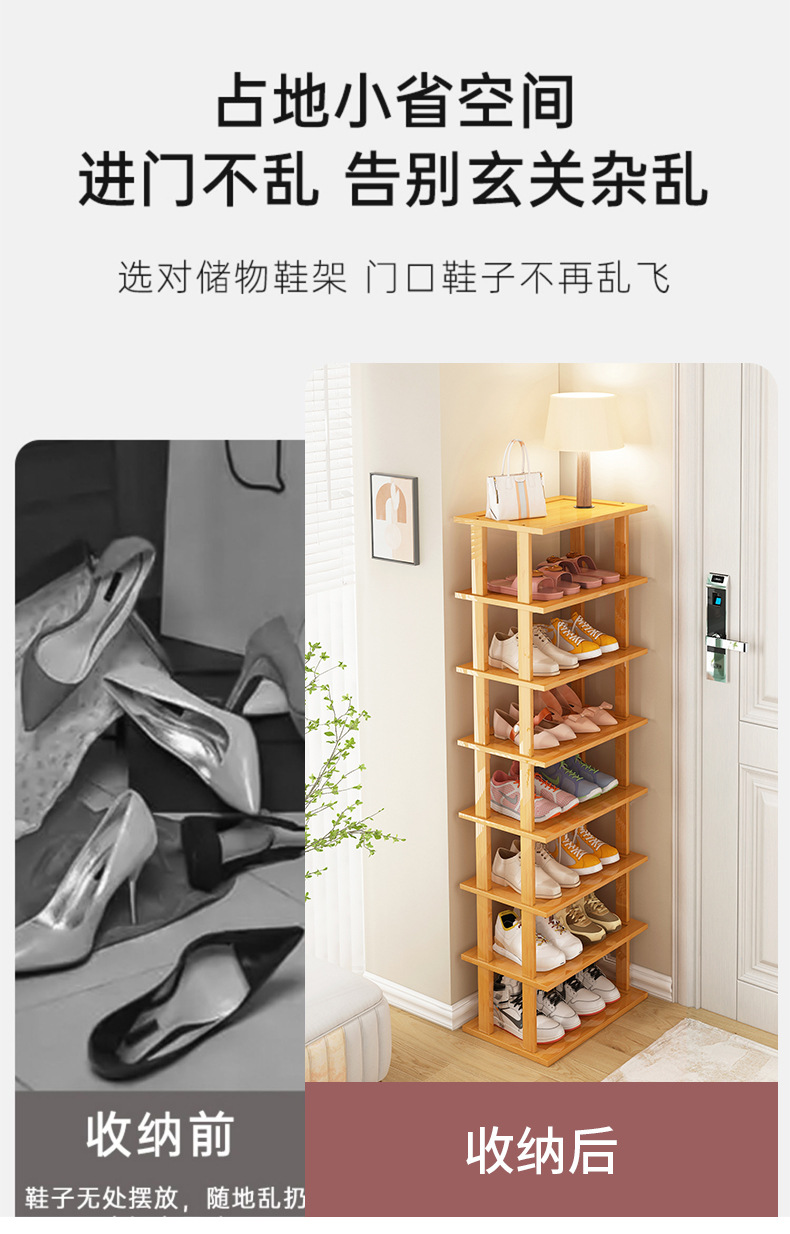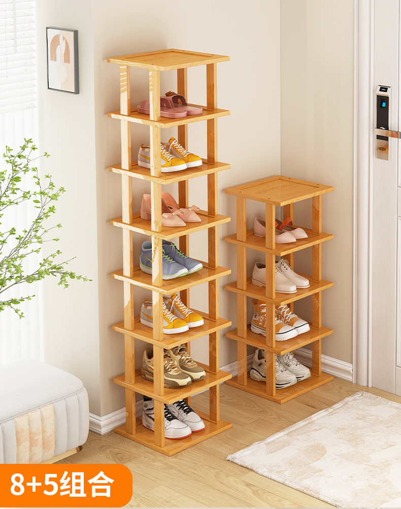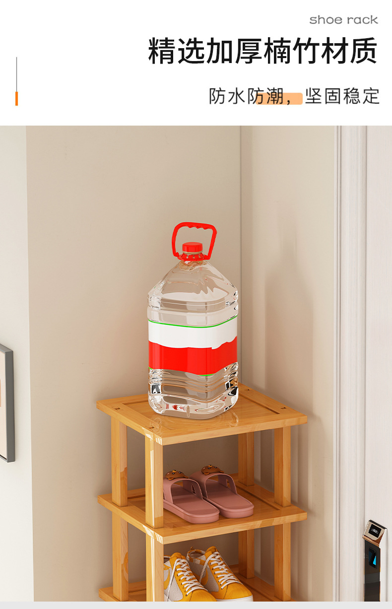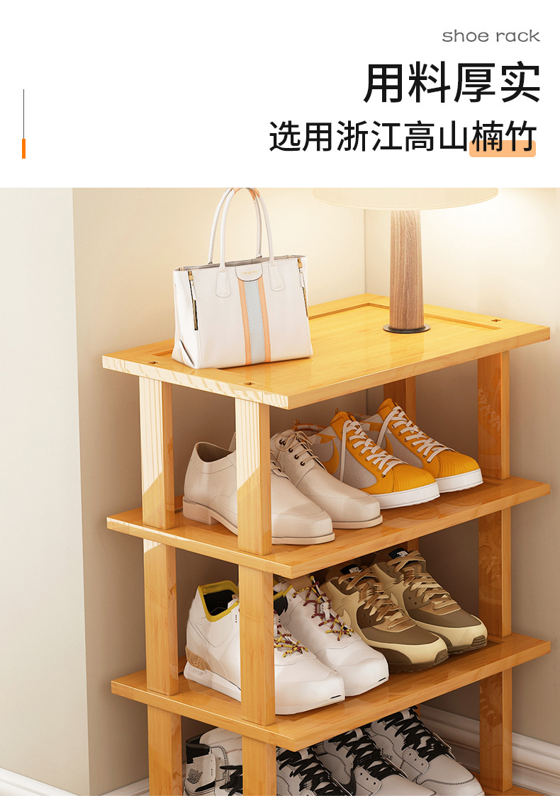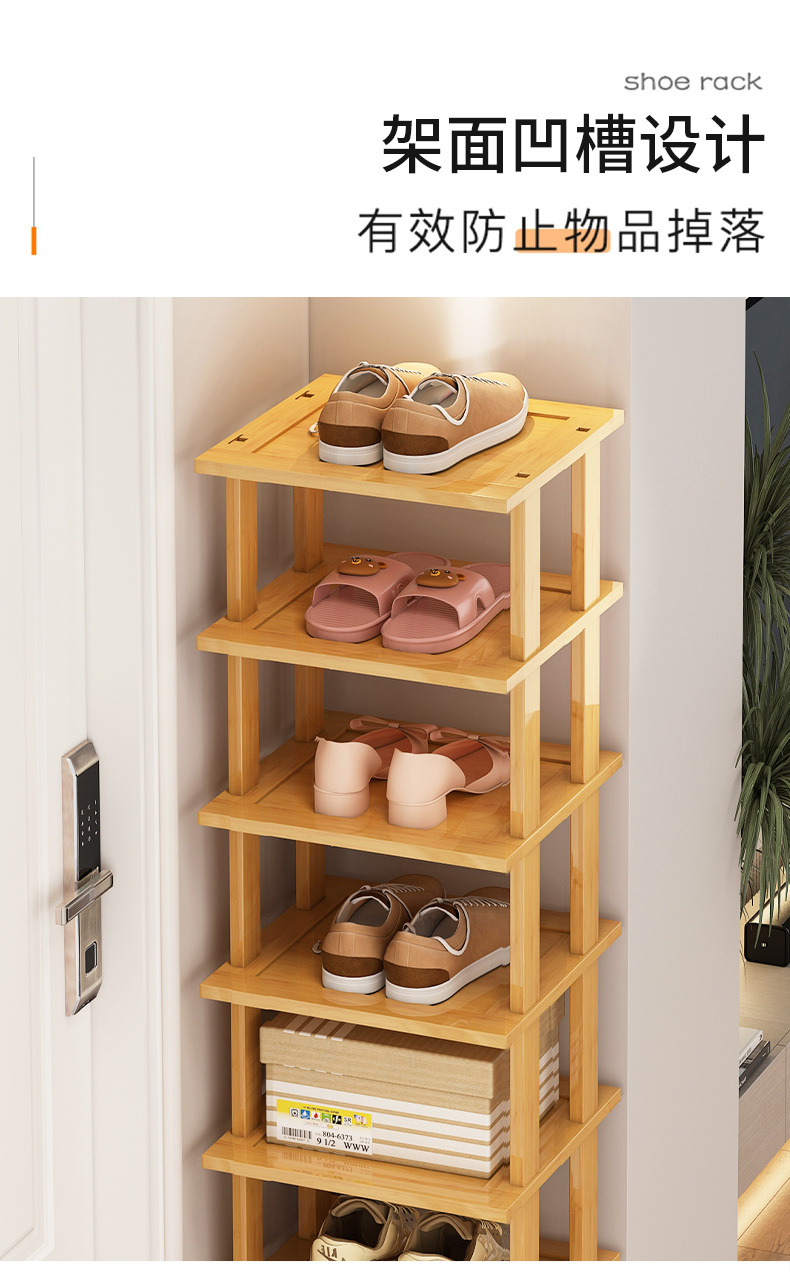 Zapatero estrecho, artefacto de almacenamiento para puerta de casa simple, ahorro de espacio, zapatero de bambú económico multicapa para casas de alquiler
