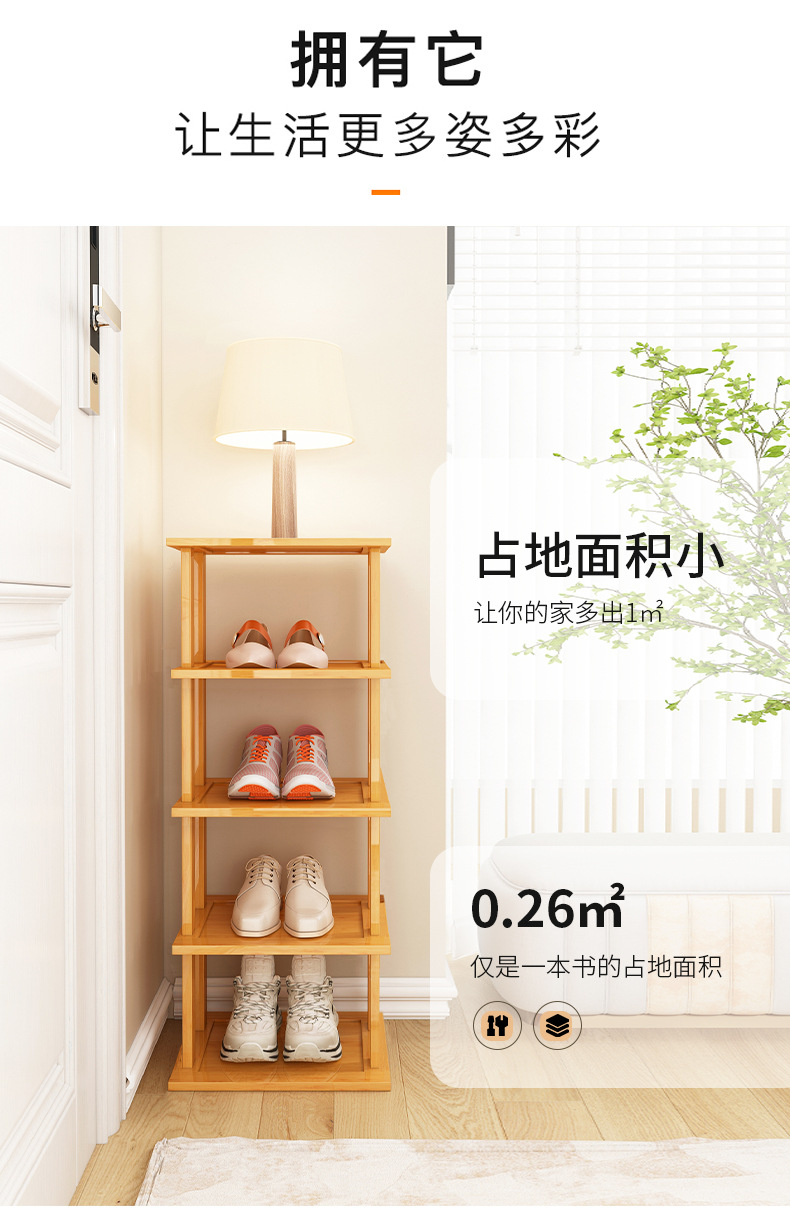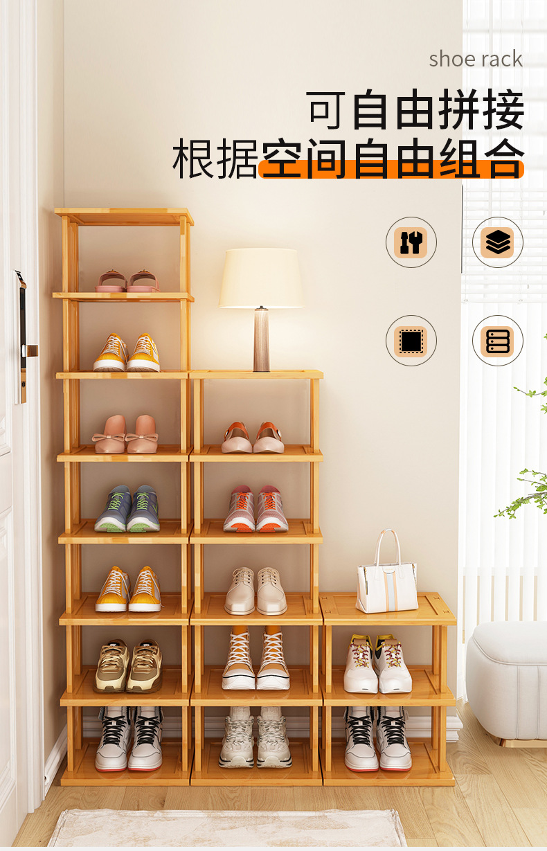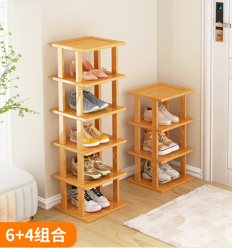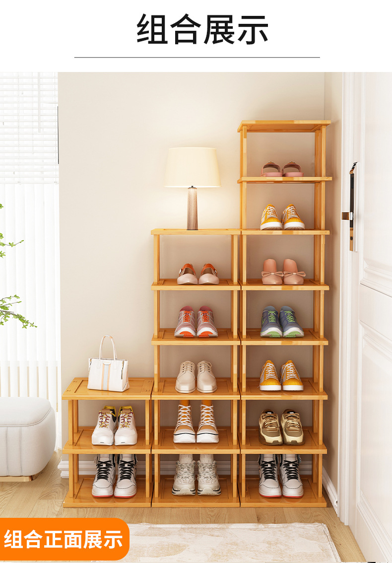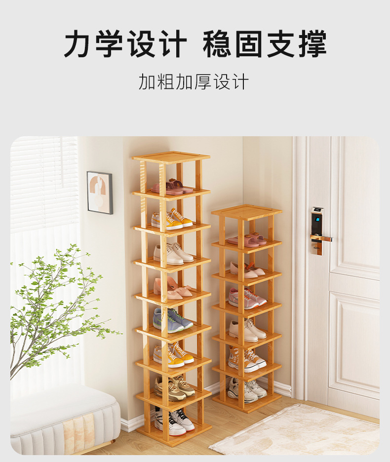 Zapatero estrecho, artefacto de almacenamiento para puerta de casa simple, ahorro de espacio, zapatero de bambú económico multicapa para casas de alquiler