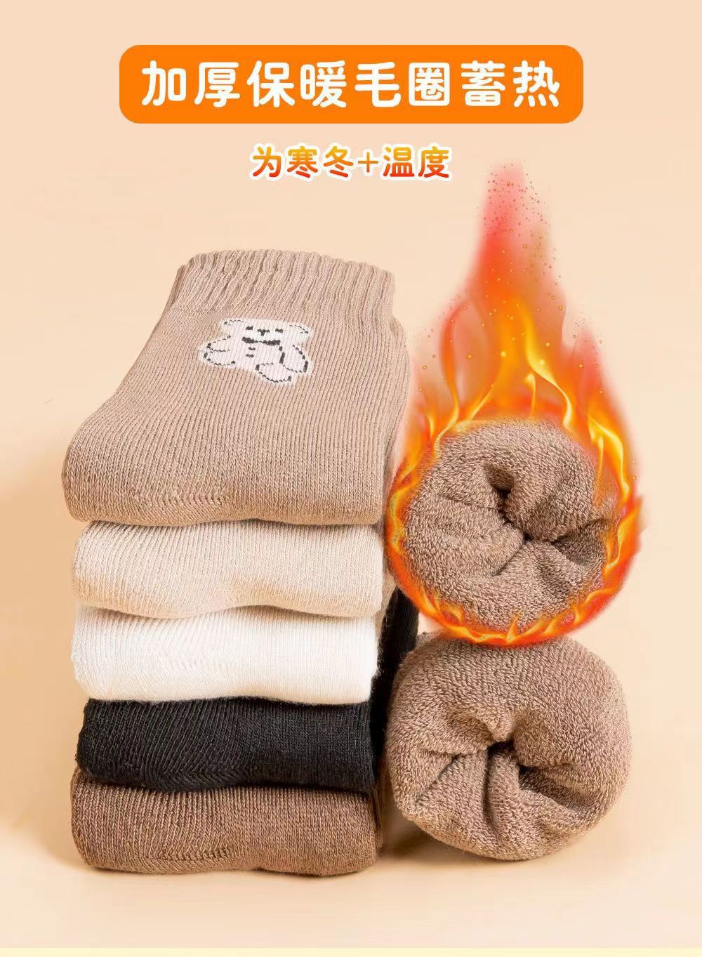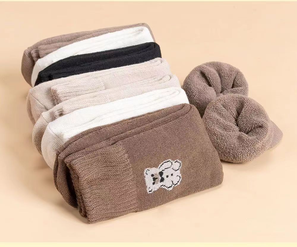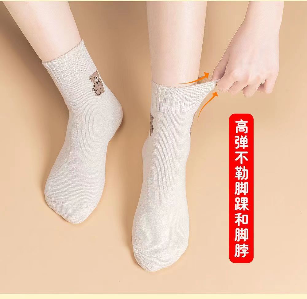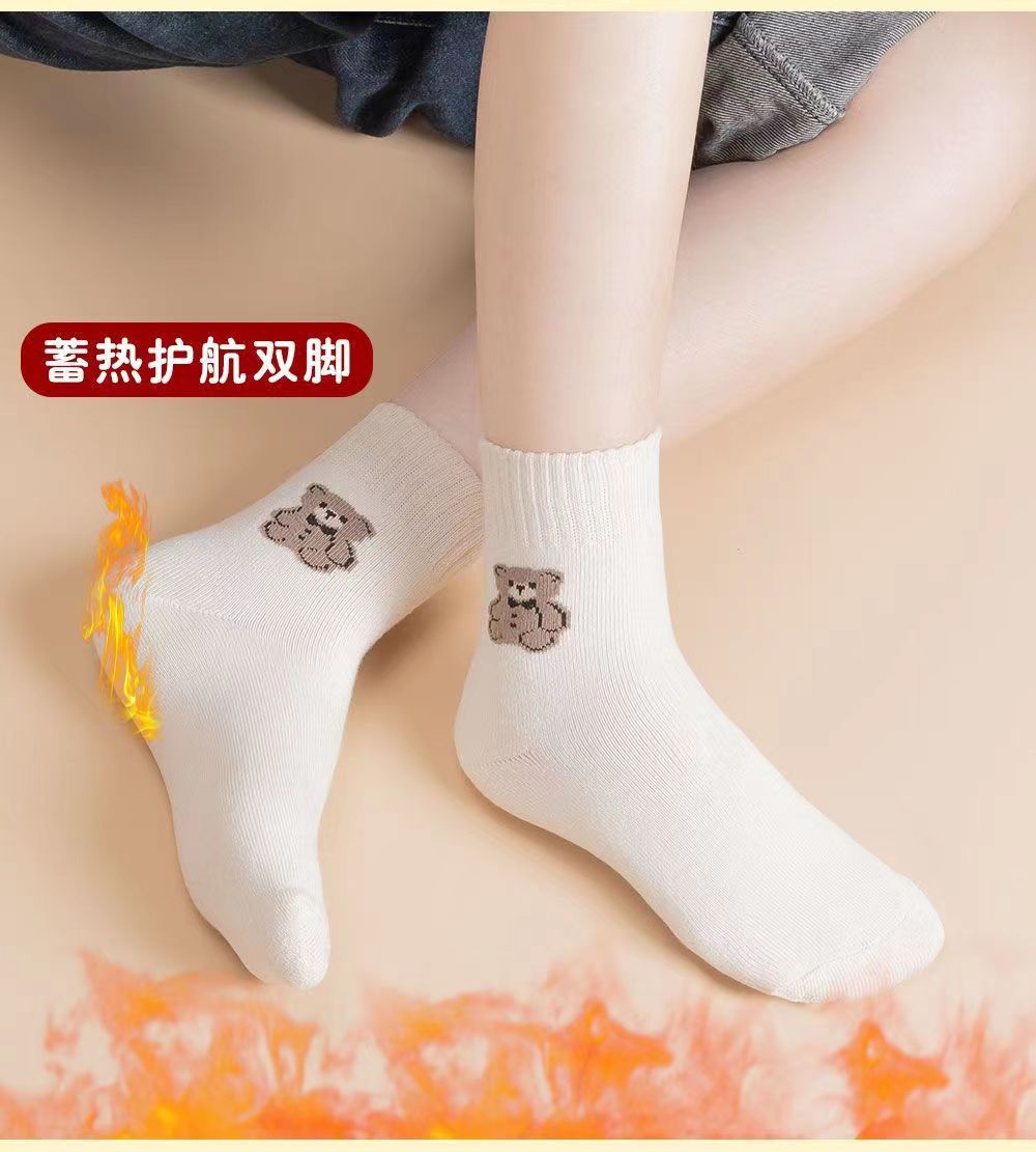 Oso Otoño e Invierno calcetines cálidos al por mayor de las mujeres a media pantorrilla forrada de lana engrosada resistente al frío Terry calcetines toalla Calcetines de piso