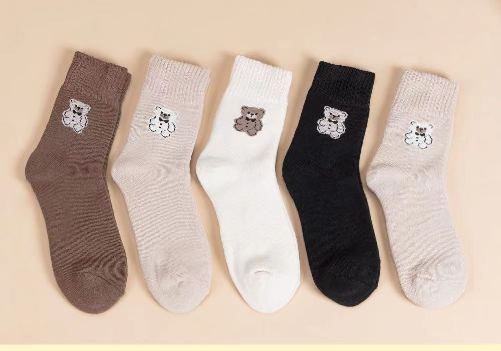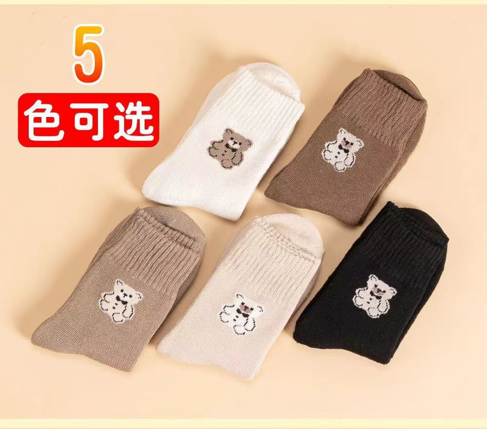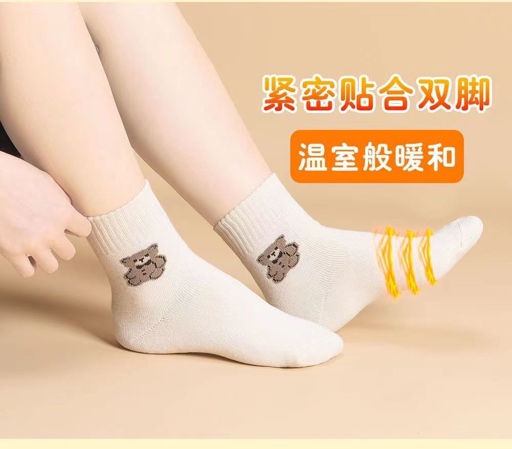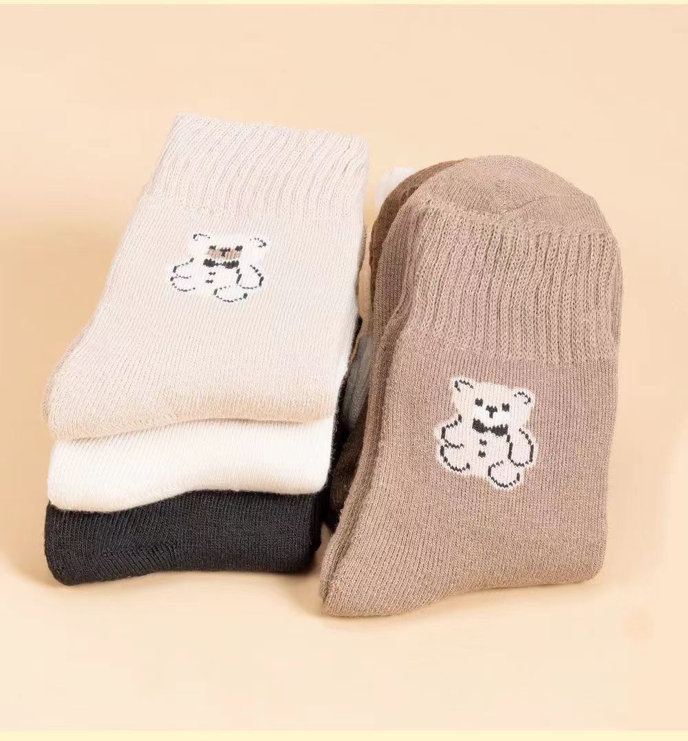 Oso Otoño e Invierno calcetines cálidos al por mayor de las mujeres a media pantorrilla forrada de lana engrosada resistente al frío Terry calcetines toalla Calcetines de piso