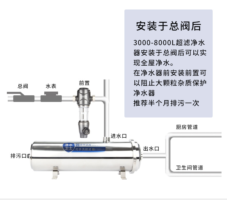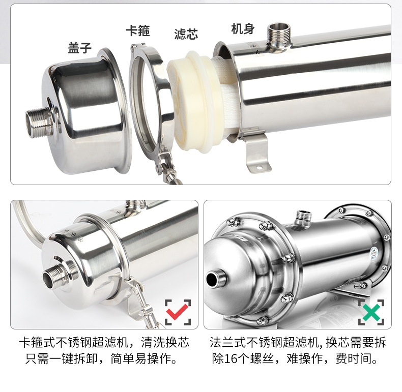 Acero inoxidable gran flujo abrazadera superfiltro toda casa purificador de agua pozo Rural Agua amarillo barro filtro de agua mano lavable película