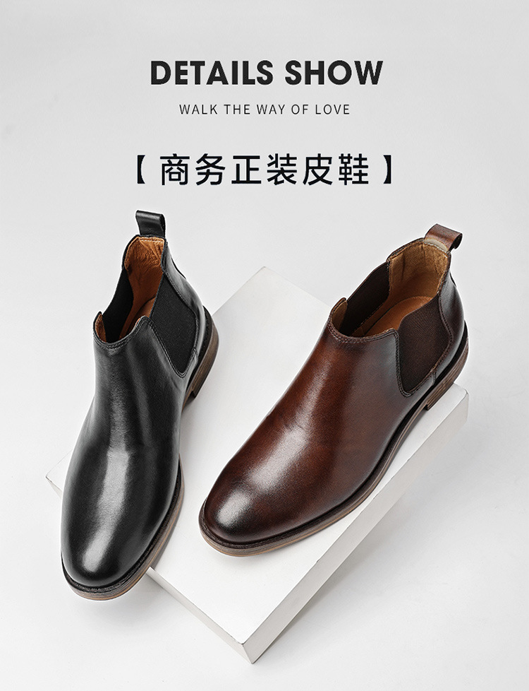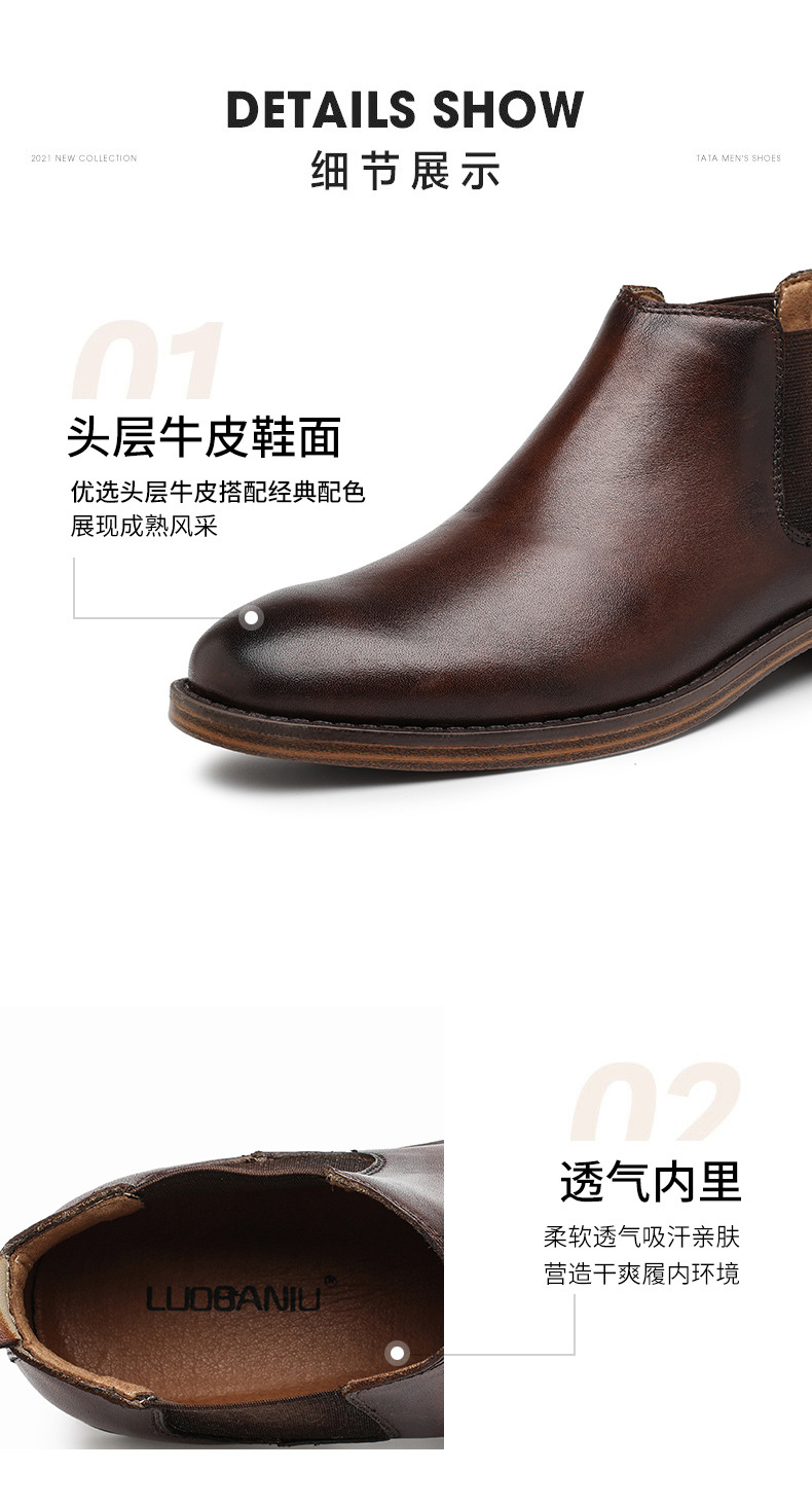 Suministro directo transfronterizo de botas de hombre Chelsea, cabeza redonda, ropa formal, retro de alta calidad, botas Martin de piel de vaca de primera capa de negocios británicos al por mayor
