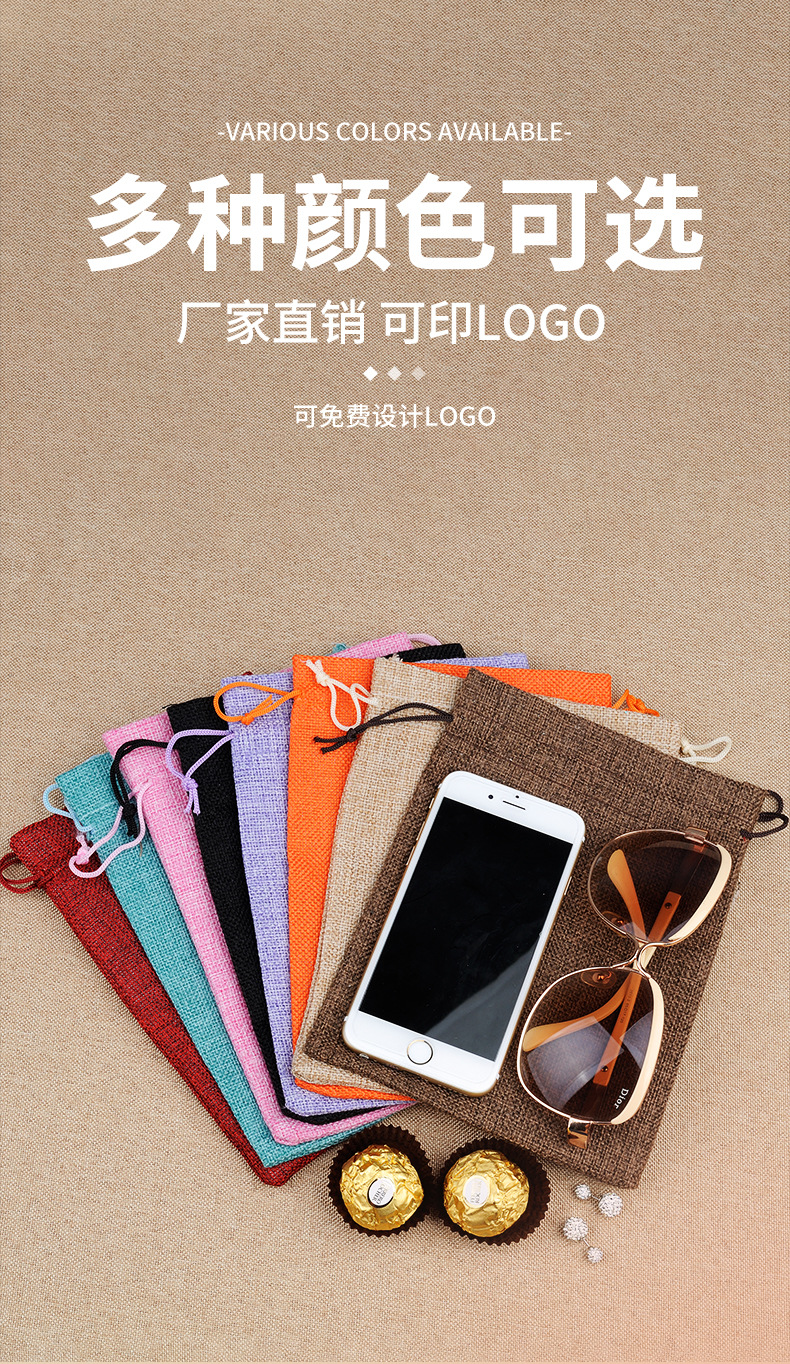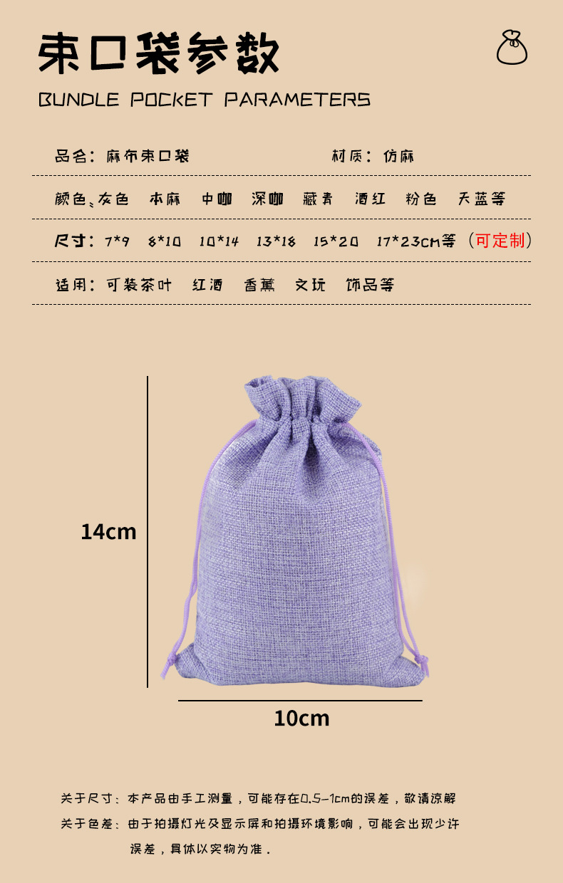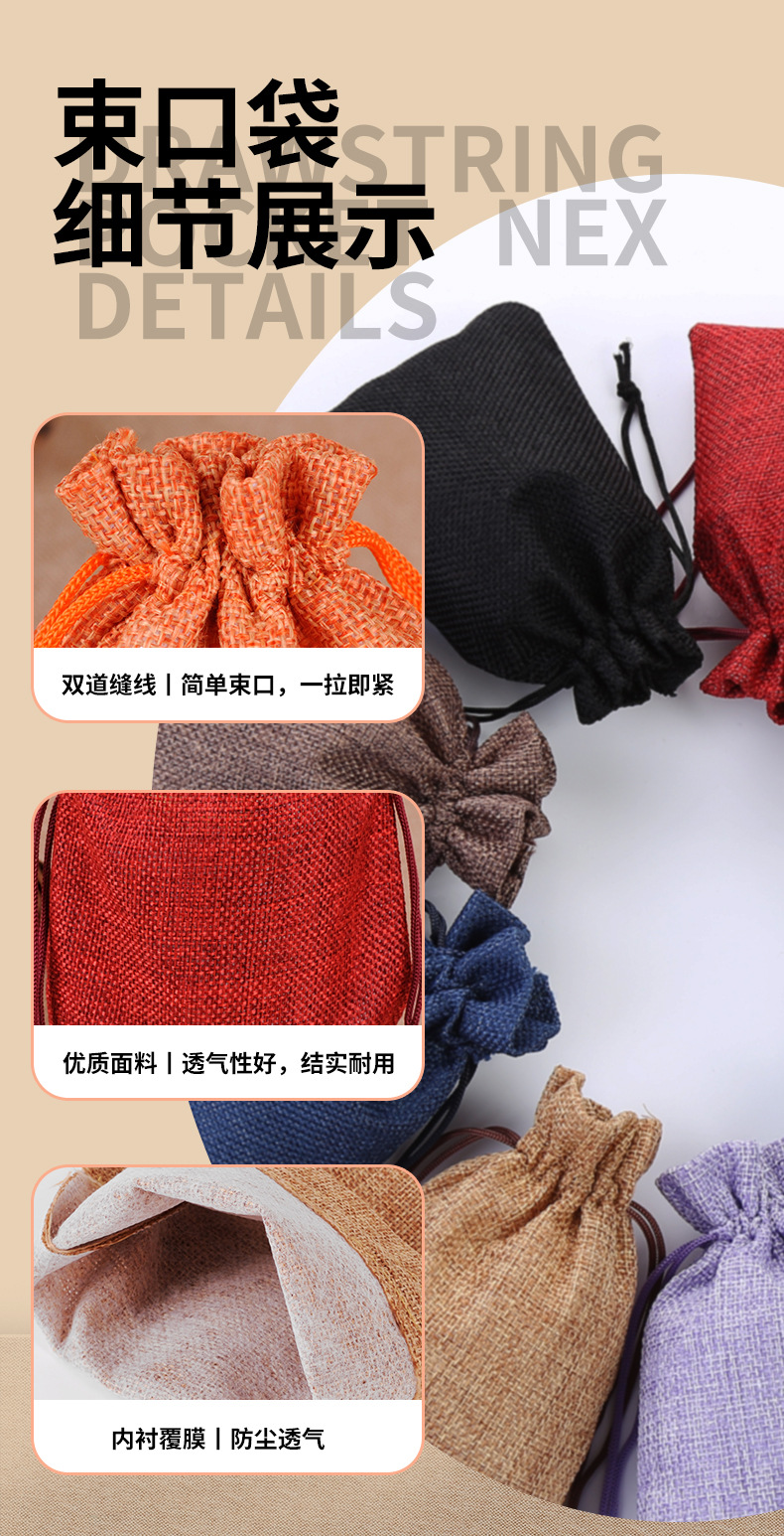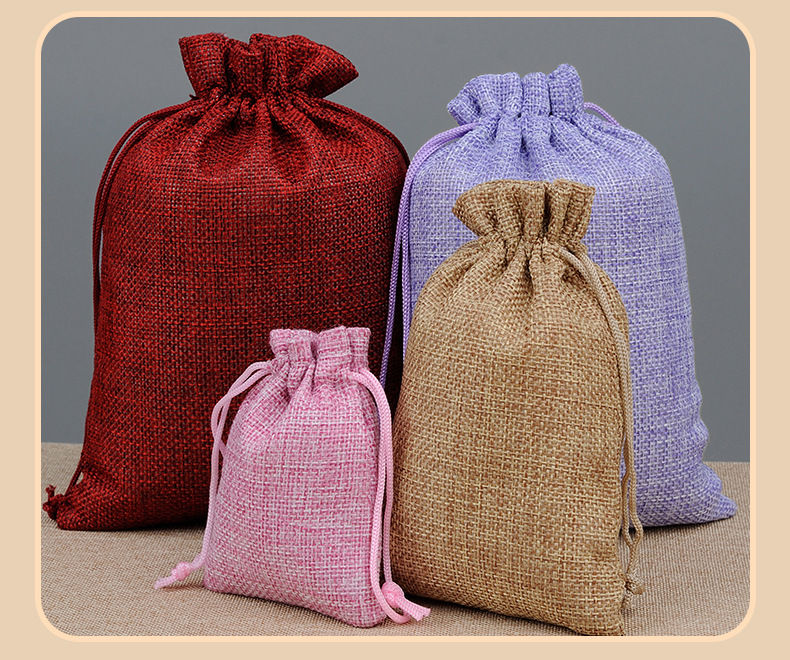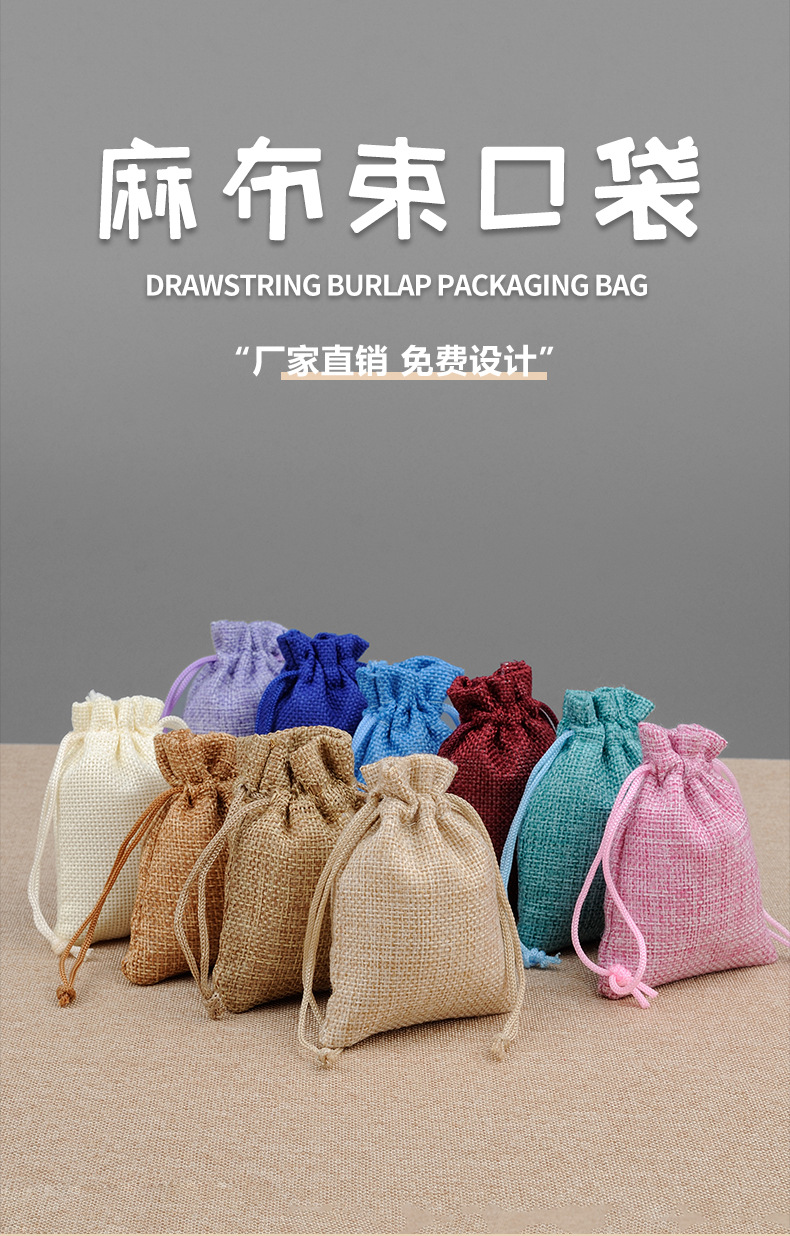 Fábrica en stock bolsa de lino Wenwan bolsa de embalaje de la joyería bolsa de té zongzi Almacenamiento de lino bolsa de cordón al por mayor