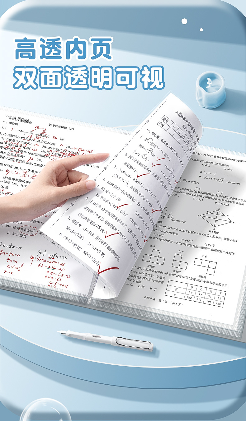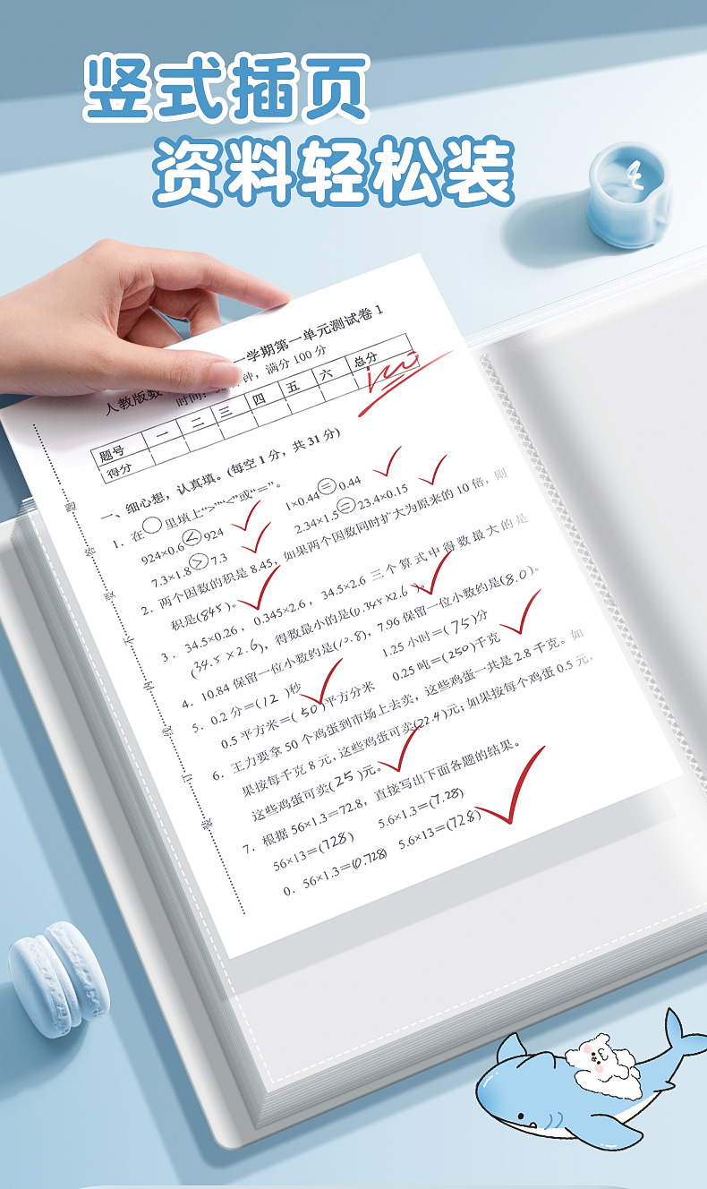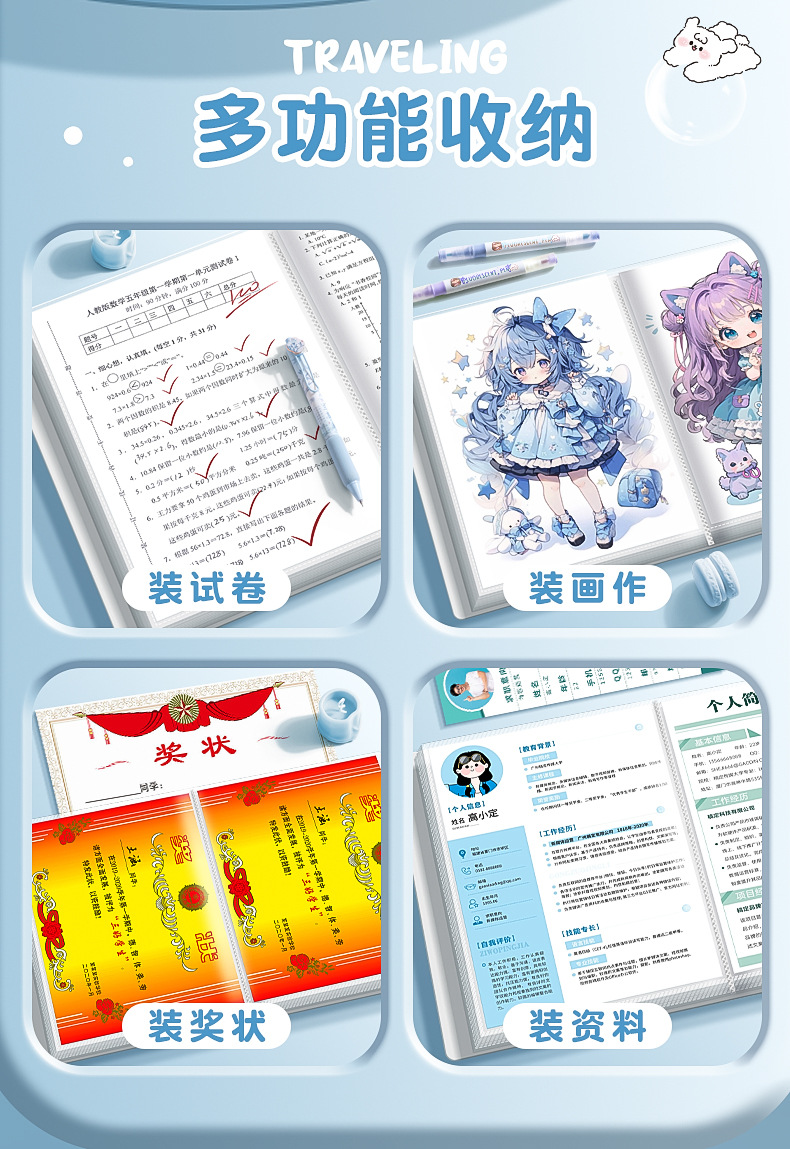 A4 multi-capa carpeta estudiante prueba papel transparente dibujos animados órgano bolsa negocio oficina archivo carpeta papelería almacenamiento artefacto